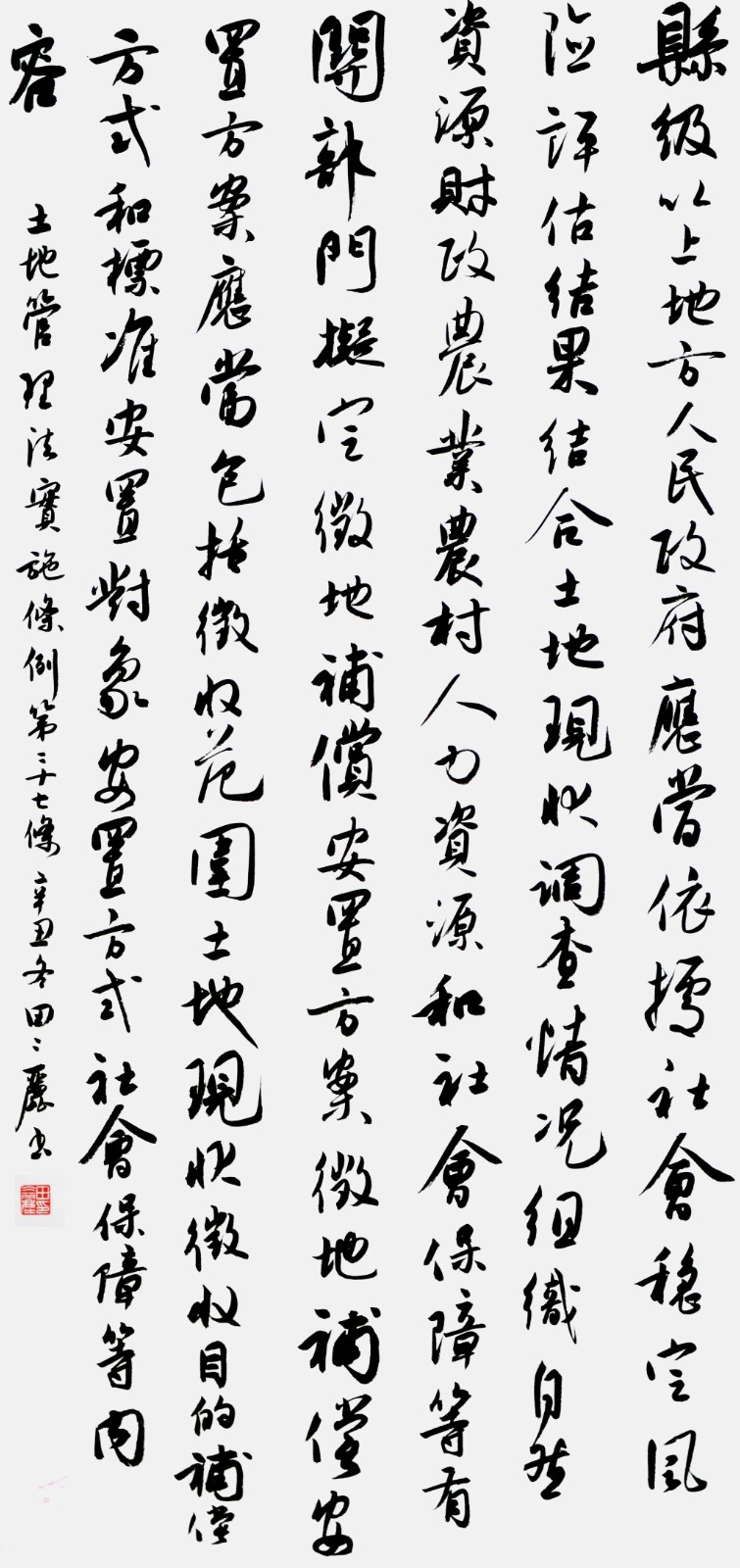 繼1600余位書法家參與書寫《中華人民共和國民法典》全部1260條法條之后,法治日報社聯(lián)合自然資源部法規(guī)司、自然資源部書畫研究會和北京昌平書法家協(xié)會,將筆端對準土地管理“一法一條例”,即《中華人民共和國土地管理法》和《中華人民共和國土地管理法實施條例》。