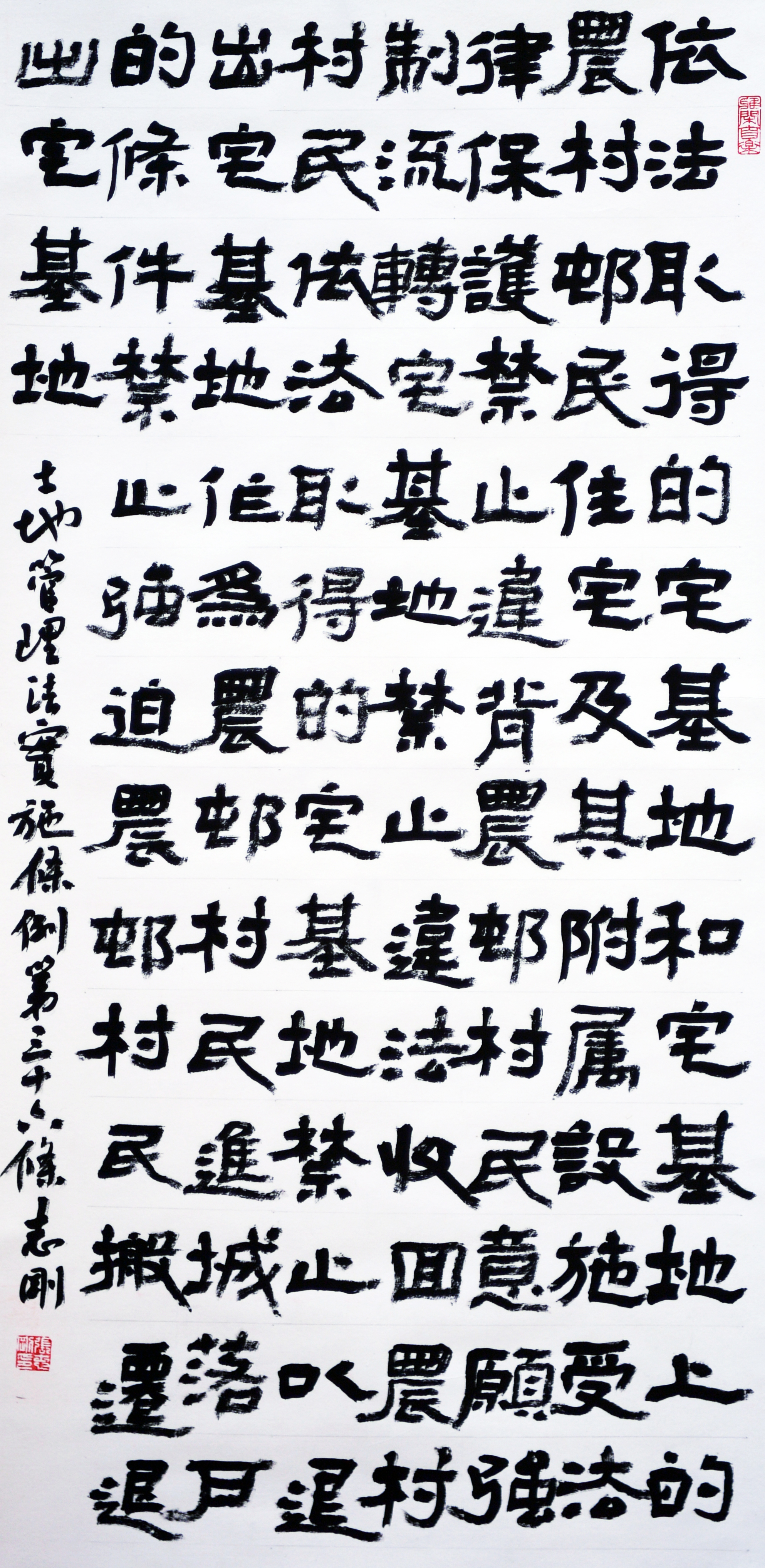 繼1600余位書(shū)法家參與書(shū)寫(xiě)《中華人民共和國(guó)民法典》全部1260條法條之后,法治日?qǐng)?bào)社聯(lián)合自然資源部法規(guī)司、自然資源部書(shū)畫(huà)研究會(huì)和北京昌平書(shū)法家協(xié)會(huì),將筆端對(duì)準(zhǔn)土地管理“一法一條例”,即《中華人民共和國(guó)土地管理法》和《中華人民共和國(guó)土地管理法實(shí)施條例》。