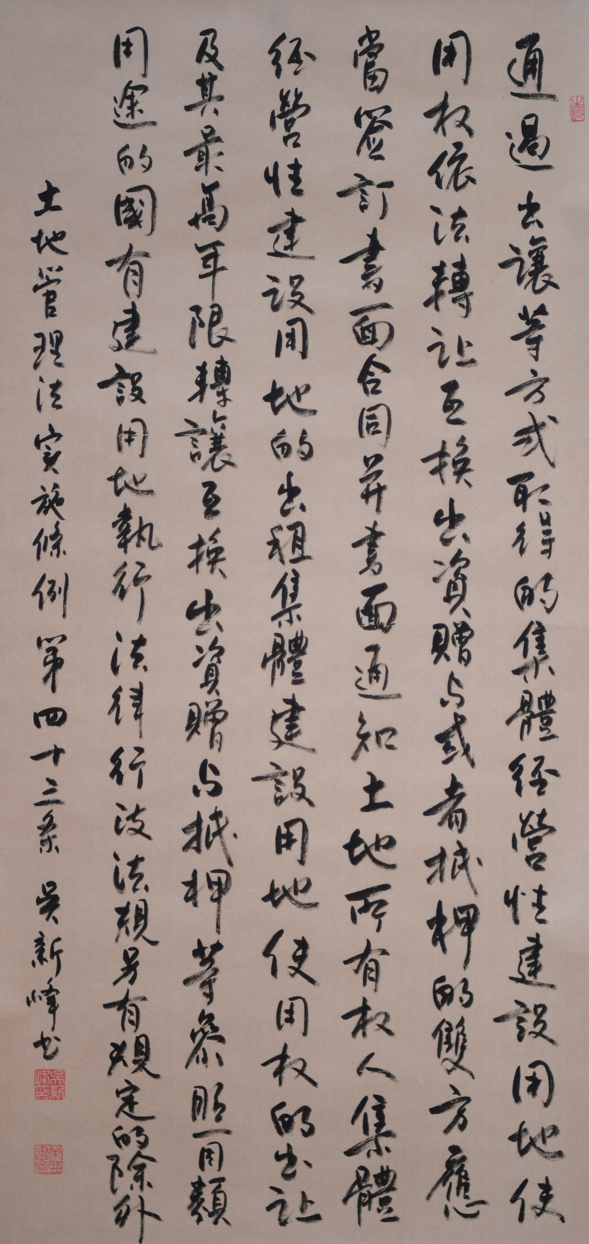 繼1600余位書法家參與書寫《中華人民共和國(guó)民法典》全部1260條法條之后,法治日?qǐng)?bào)社聯(lián)合自然資源部法規(guī)司、自然資源部書畫研究會(huì)和北京昌平書法家協(xié)會(huì),將筆端對(duì)準(zhǔn)土地管理“一法一條例”,即《中華人民共和國(guó)土地管理法》和《中華人民共和國(guó)土地管理法實(shí)施條例》。