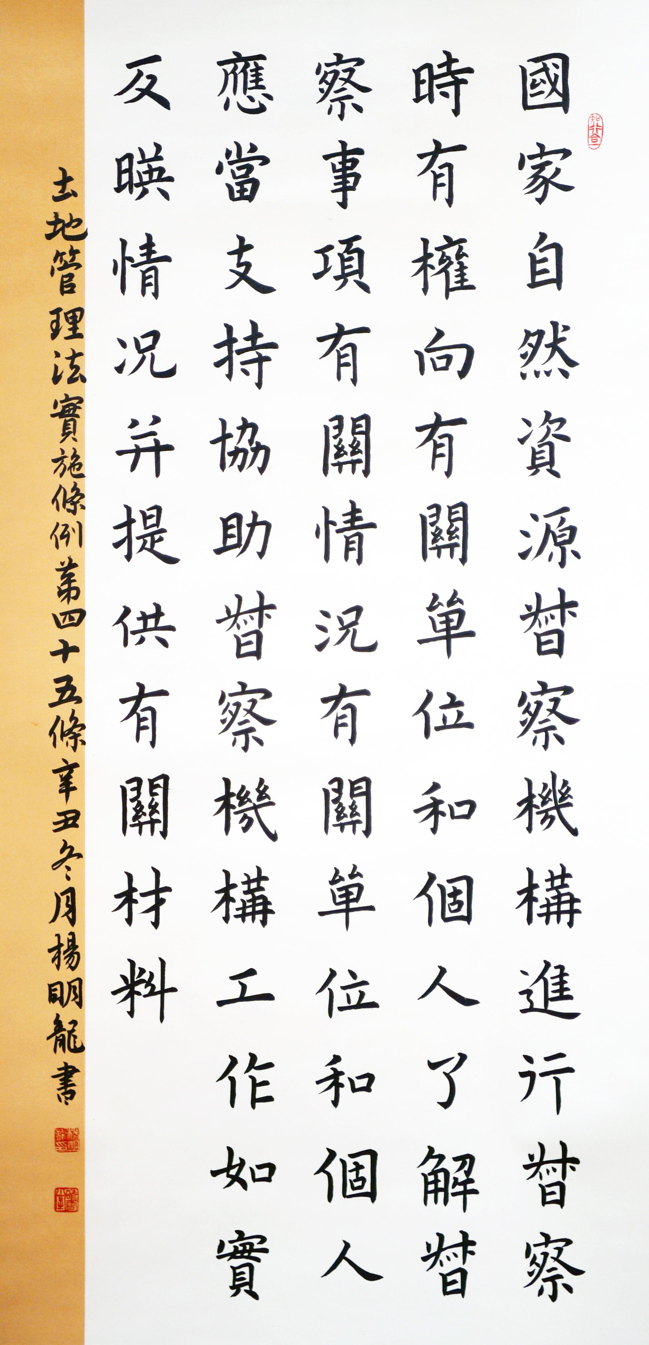 繼1600余位書法家參與書寫《中華人民共和國民法典》全部1260條法條之后,法治日報(bào)社聯(lián)合自然資源部法規(guī)司、自然資源部書畫研究會和北京昌平書法家協(xié)會,將筆端對準(zhǔn)土地管理“一法一條例”,即《中華人民共和國土地管理法》和《中華人民共和國土地管理法實(shí)施條例》。