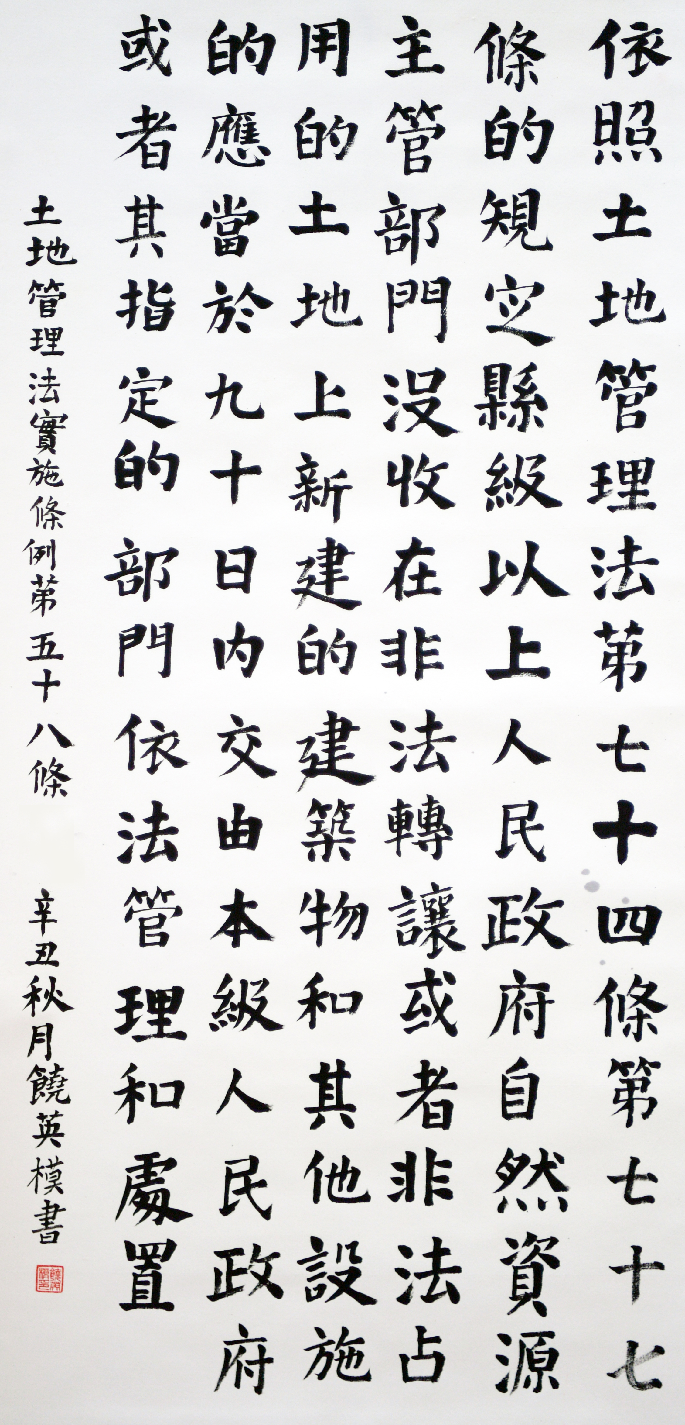 繼1600余位書法家參與書寫《中華人民共和國(guó)民法典》全部1260條法條之后,法治日?qǐng)?bào)社聯(lián)合自然資源部法規(guī)司、自然資源部書畫研究會(huì)和北京昌平書法家協(xié)會(huì),將筆端對(duì)準(zhǔn)土地管理“一法一條例”,即《中華人民共和國(guó)土地管理法》和《中華人民共和國(guó)土地管理法實(shí)施條例》。