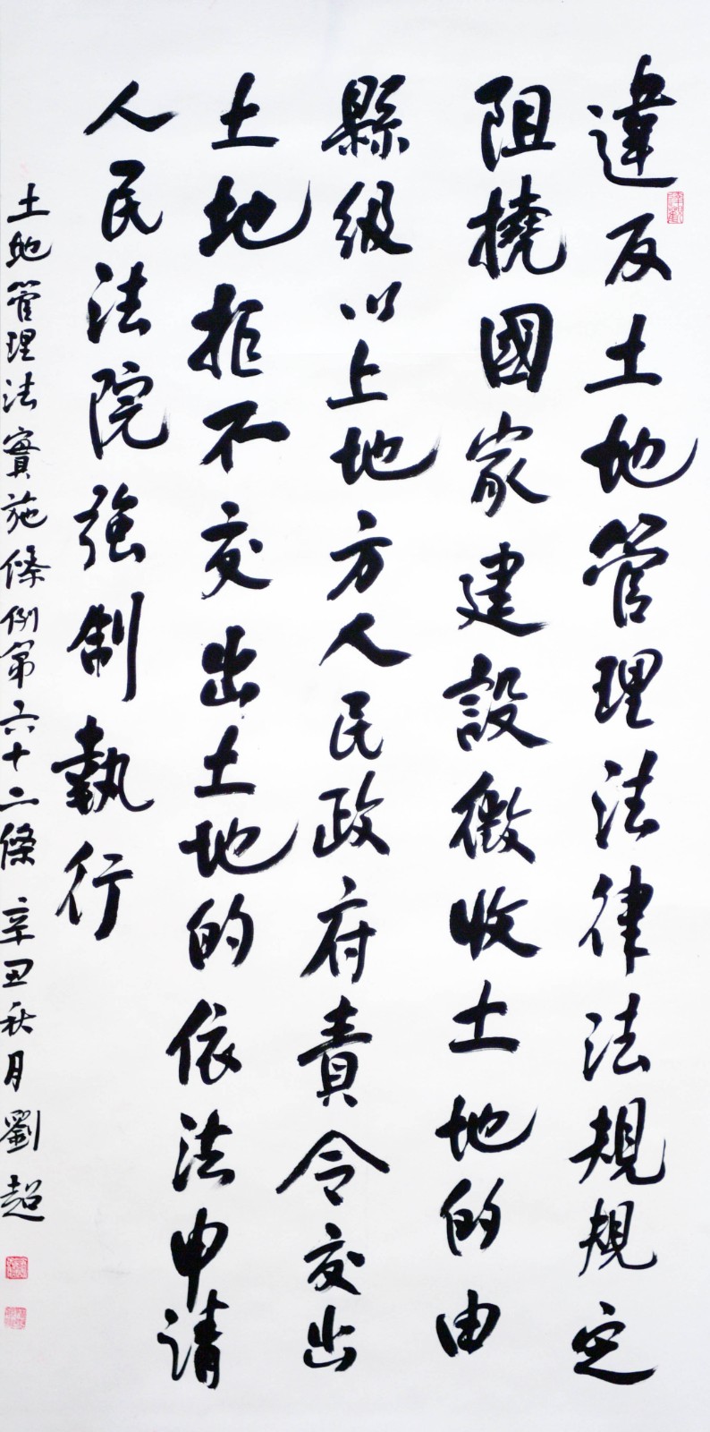 繼1600余位書法家參與書寫《中華人民共和國民法典》全部1260條法條之后,法治日報社聯(lián)合自然資源部法規(guī)司、自然資源部書畫研究會和北京昌平書法家協(xié)會,將筆端對準土地管理“一法一條例”,即《中華人民共和國土地管理法》和《中華人民共和國土地管理法實施條例》。