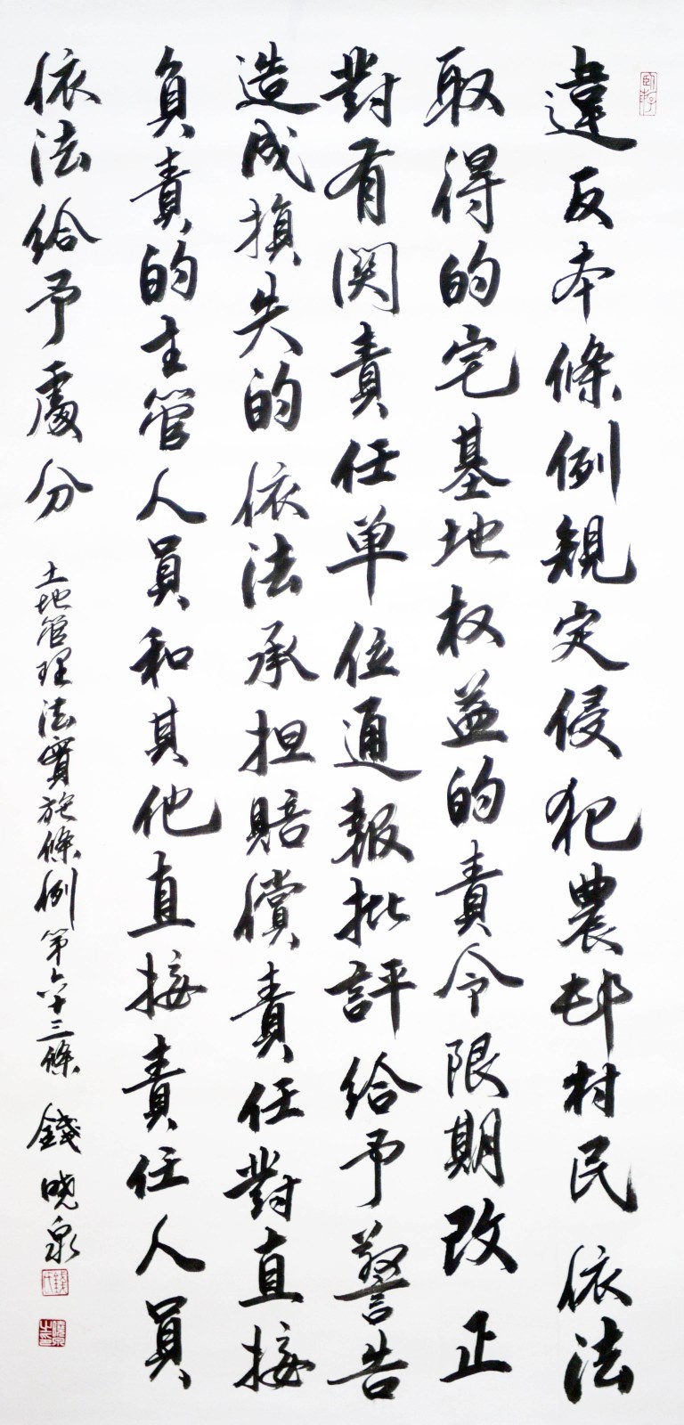 繼1600余位書法家參與書寫《中華人民共和國民法典》全部1260條法條之后,法治日報社聯(lián)合自然資源部法規(guī)司、自然資源部書畫研究會和北京昌平書法家協(xié)會,將筆端對準(zhǔn)土地管理“一法一條例”,即《中華人民共和國土地管理法》和《中華人民共和國土地管理法實施條例》。