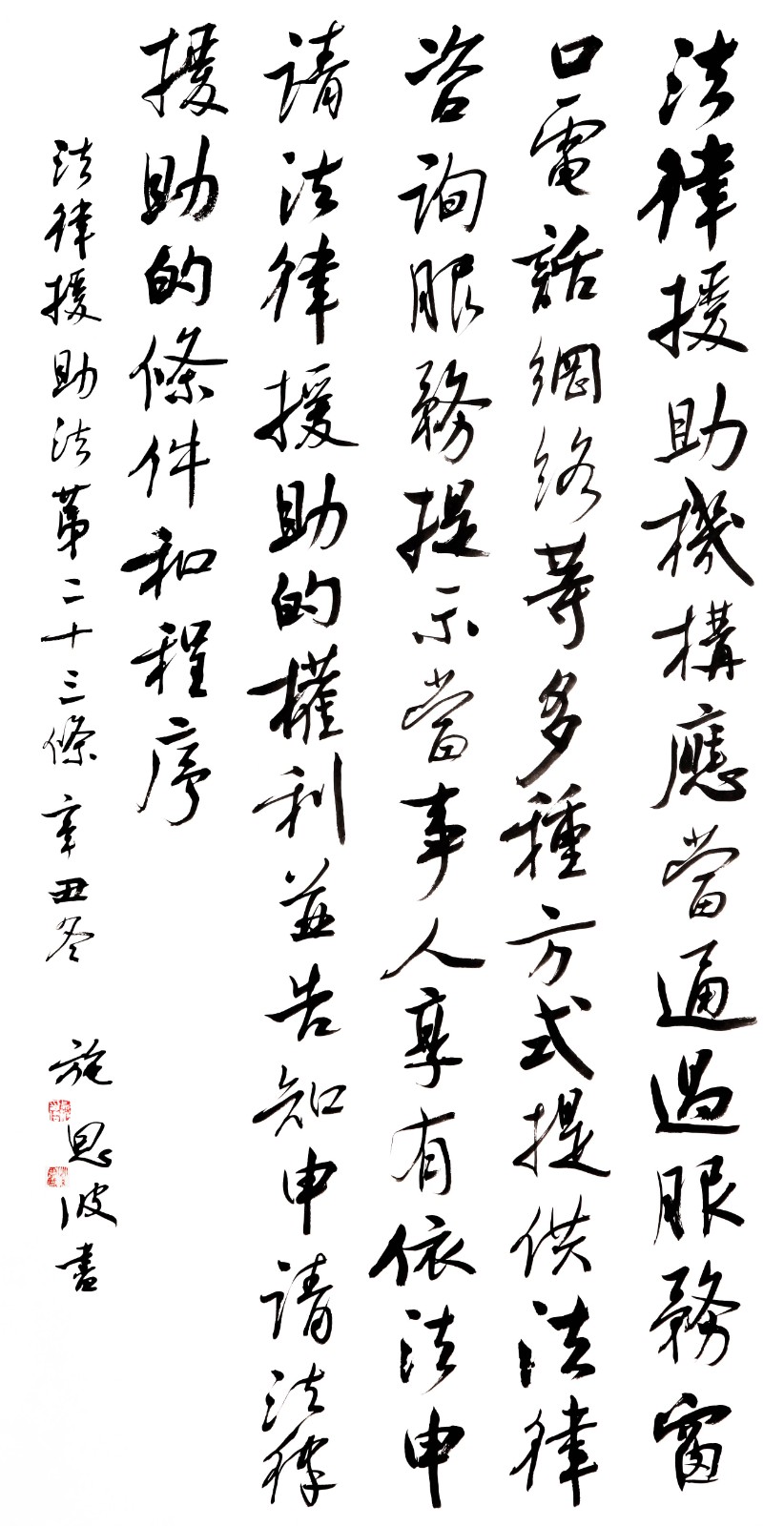 “書·法”活動(dòng)旨在為創(chuàng)新法治宣傳教育,多開一點(diǎn)腦洞、多花一點(diǎn)心思、多出一點(diǎn)力量、多做一點(diǎn)貢獻(xiàn),引領(lǐng)和推動(dòng)更多的人拿起筆來學(xué)法、寫法,在不斷“書·法”過程中,提升自身的法治素養(yǎng),在全社會(huì)弘揚(yáng)法治精神。