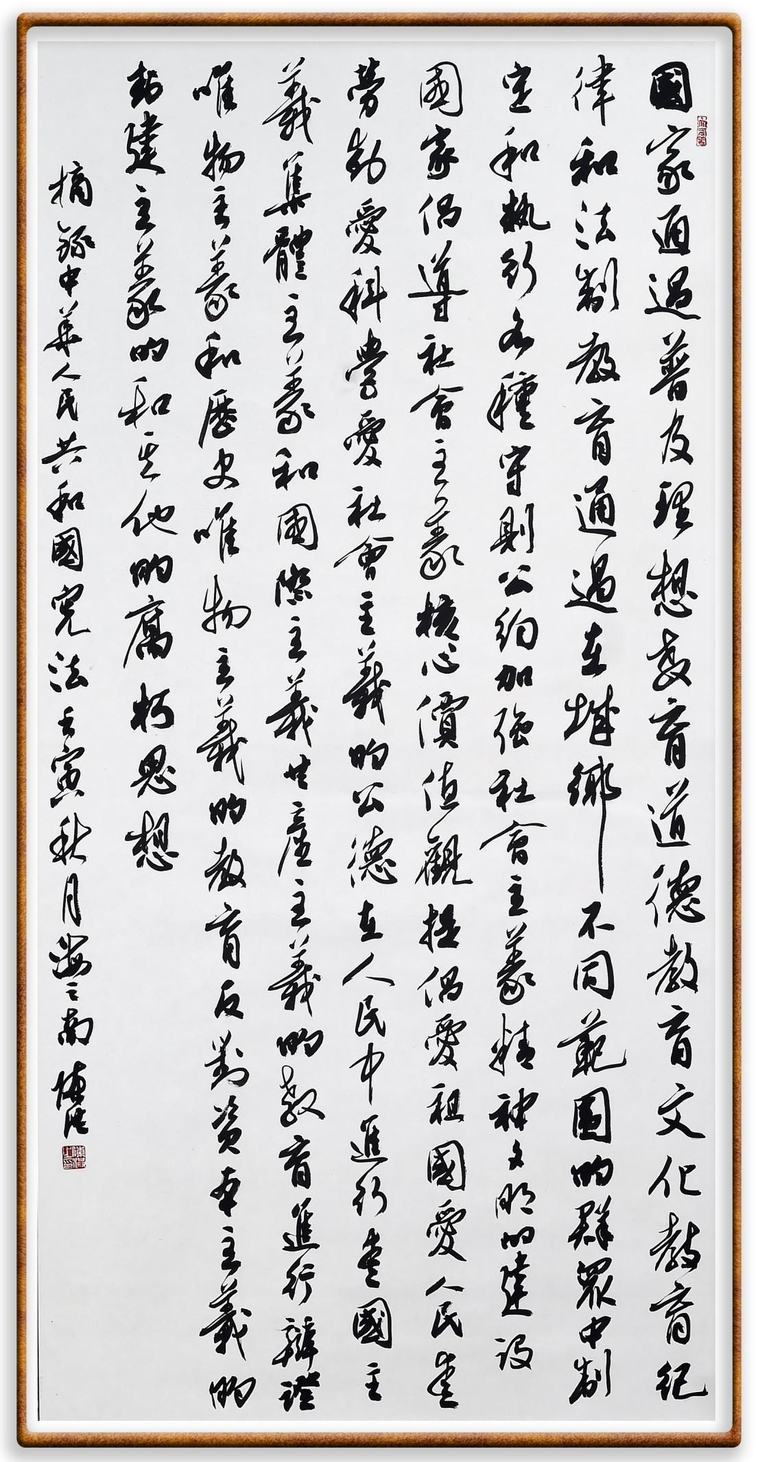 繼《中華人民共和國民法典》《中華人民共和國土地管理法》《中華人民共和國土地管理法實(shí)施條例》《中華人民共和國法律援助法》之后,法治日報(bào)社聯(lián)合北京市司法局、北京市書法家協(xié)會,將筆端對準(zhǔn)《中華人民共和國憲法》和《中華人民共和國行政處罰法》。