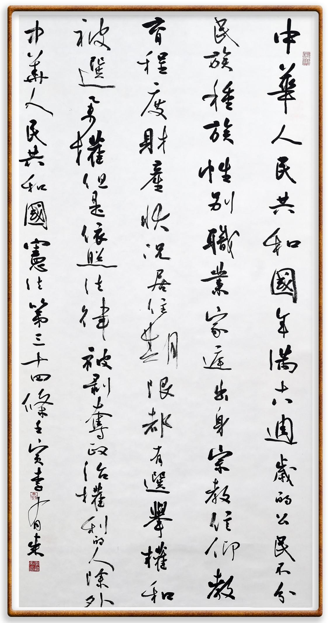 繼《中華人民共和國民法典》《中華人民共和國土地管理法》《中華人民共和國土地管理法實(shí)施條例》《中華人民共和國法律援助法》之后,法治日?qǐng)?bào)社聯(lián)合北京市司法局、北京書法家協(xié)會(huì),將筆端對(duì)準(zhǔn)《中華人民共和國憲法》和《中華人民共和國行政處罰法》。