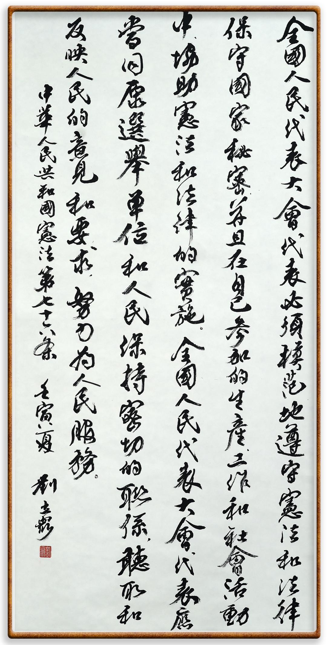 繼《中華人民共和國民法典》《中華人民共和國土地管理法》《中華人民共和國土地管理法實施條例》《中華人民共和國法律援助法》之后,法治日報社聯(lián)合北京市司法局、北京書法家協(xié)會,將筆端對準(zhǔn)《中華人民共和國憲法》和《中華人民共和國行政處罰法》。
