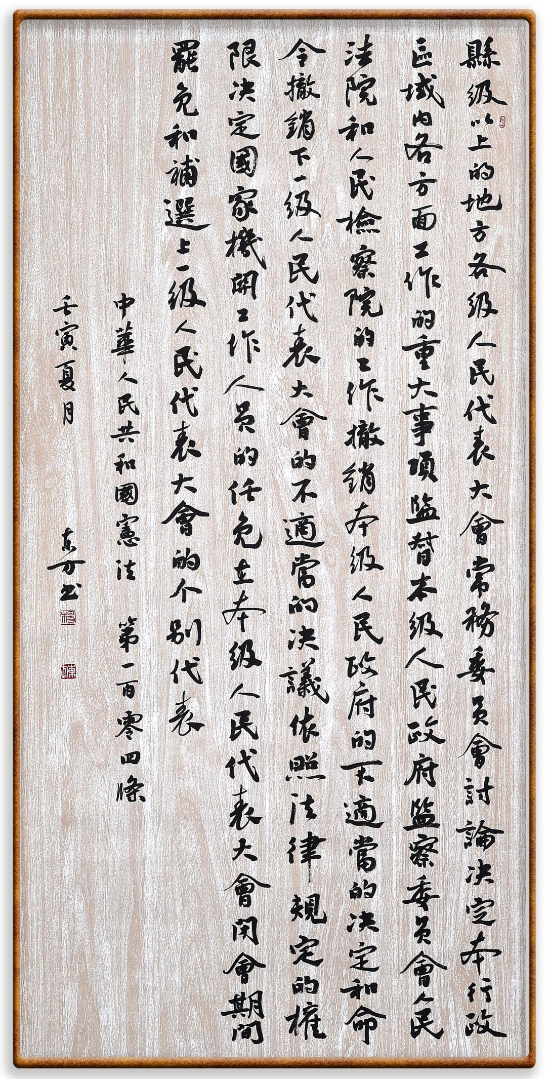 繼《中華人民共和國民法典》《中華人民共和國土地管理法》《中華人民共和國土地管理法實施條例》《中華人民共和國法律援助法》之后,法治日報社聯(lián)合北京市司法局、北京書法家協(xié)會,將筆端對準《中華人民共和國憲法》和《中華人民共和國行政處罰法》。