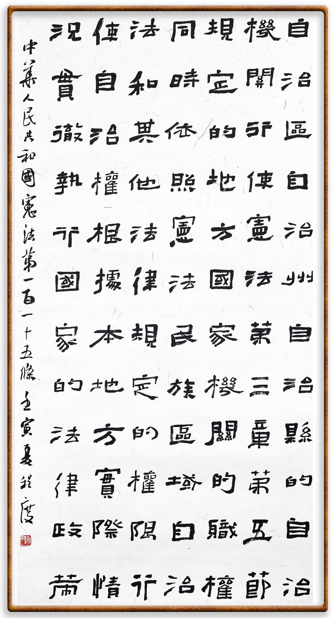 繼《中華人民共和國民法典》《中華人民共和國土地管理法》《中華人民共和國土地管理法實(shí)施條例》《中華人民共和國法律援助法》之后,法治日?qǐng)?bào)社聯(lián)合北京市司法局、北京書法家協(xié)會(huì),將筆端對(duì)準(zhǔn)《中華人民共和國憲法》和《中華人民共和國行政處罰法》。
