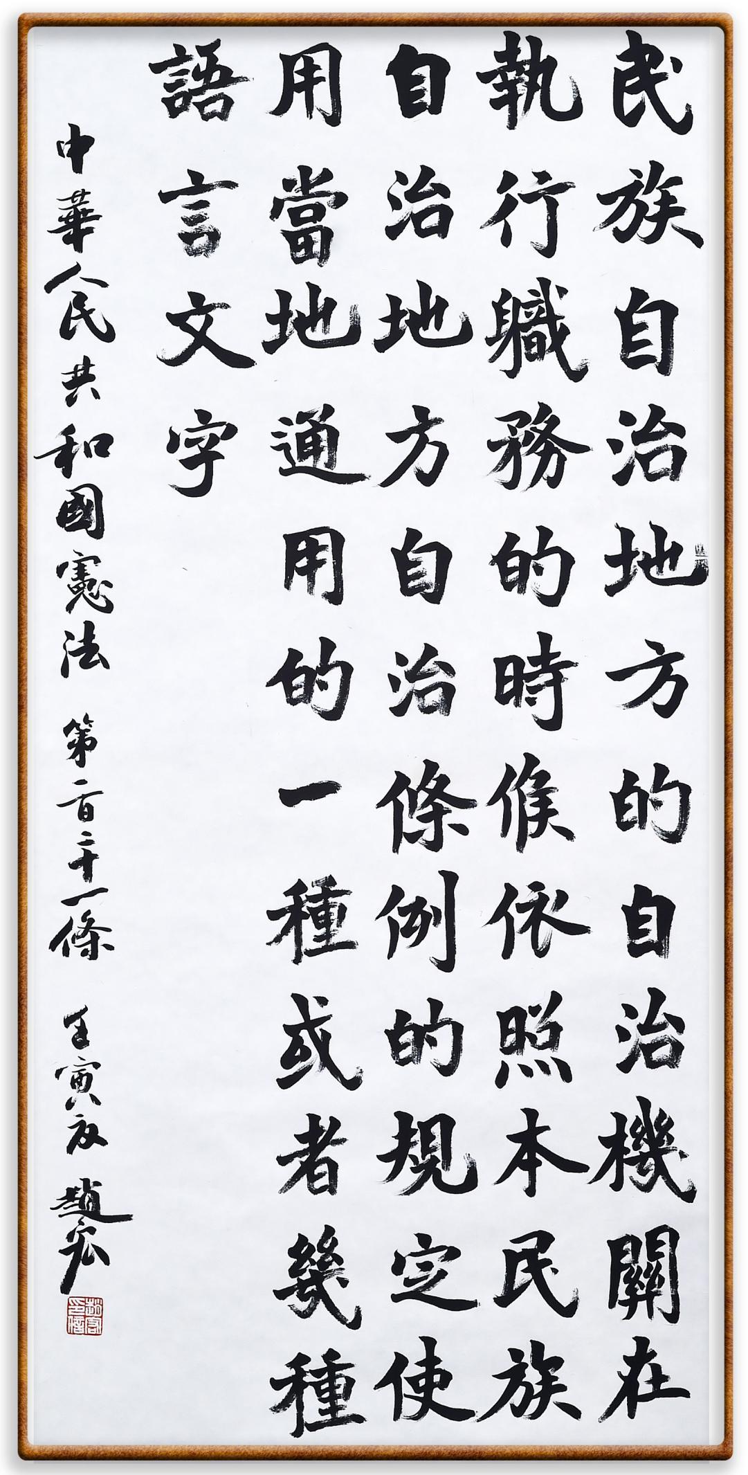 繼《中華人民共和國民法典》《中華人民共和國土地管理法》《中華人民共和國土地管理法實施條例》《中華人民共和國法律援助法》之后,法治日報社聯(lián)合北京市司法局、北京書法家協(xié)會,將筆端對準(zhǔn)《中華人民共和國憲法》和《中華人民共和國行政處罰法》。