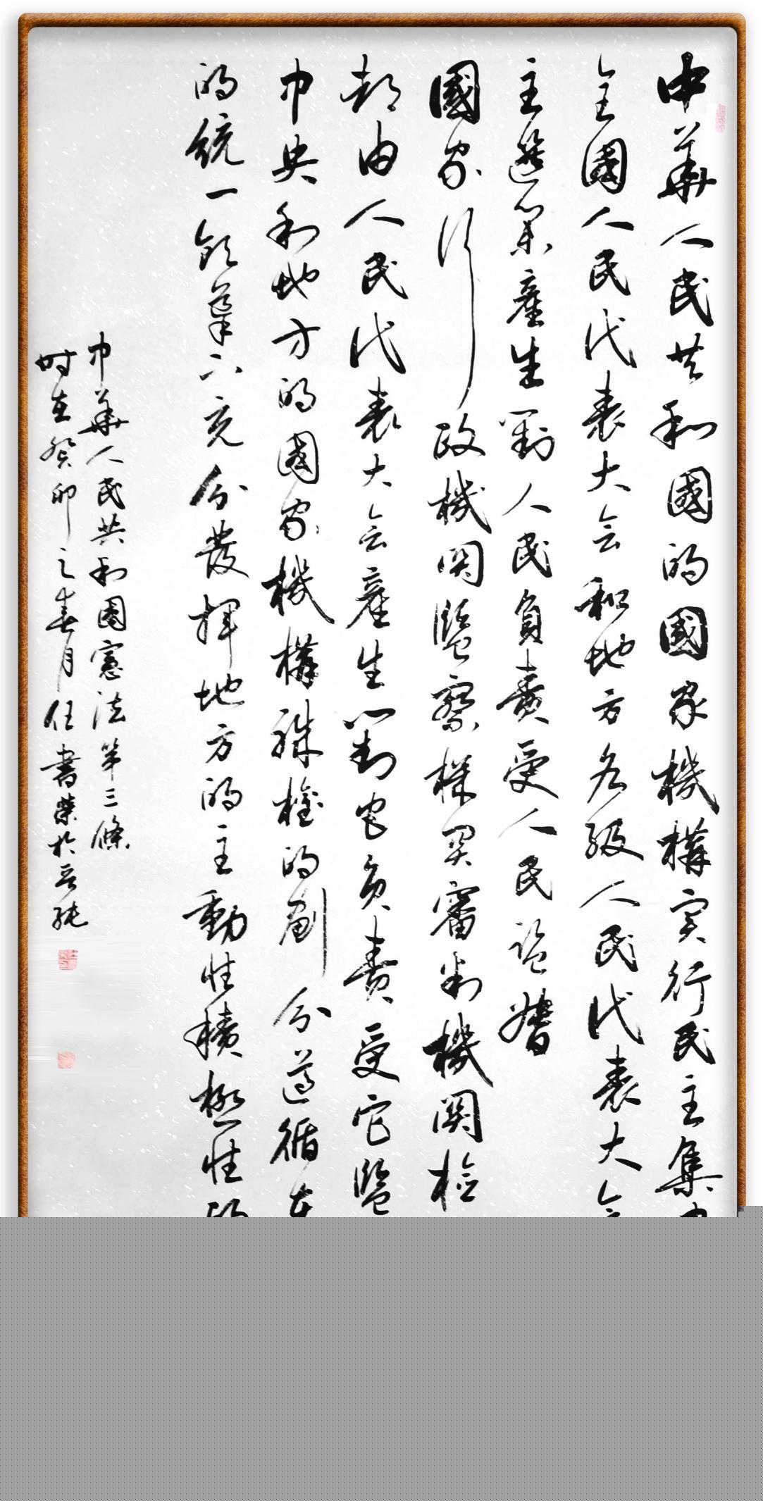 繼《中華人民共和國民法典》《中華人民共和國土地管理法》《中華人民共和國土地管理法實施條例》《中華人民共和國法律援助法》之后,法治日報社聯(lián)合北京市司法局、北京書法家協(xié)會,將筆端對準《中華人民共和國憲法》和《中華人民共和國行政處罰法》。