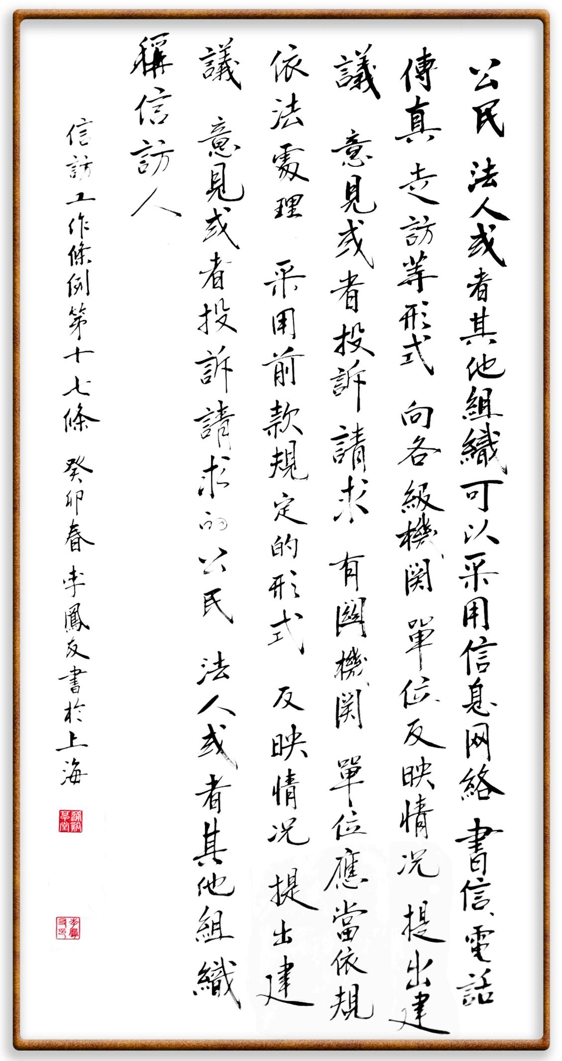 李鳳友,上海市信訪辦來訪協(xié)調(diào)處四級(jí)調(diào)研員,中國(guó)硬筆書法協(xié)會(huì)會(huì)員。