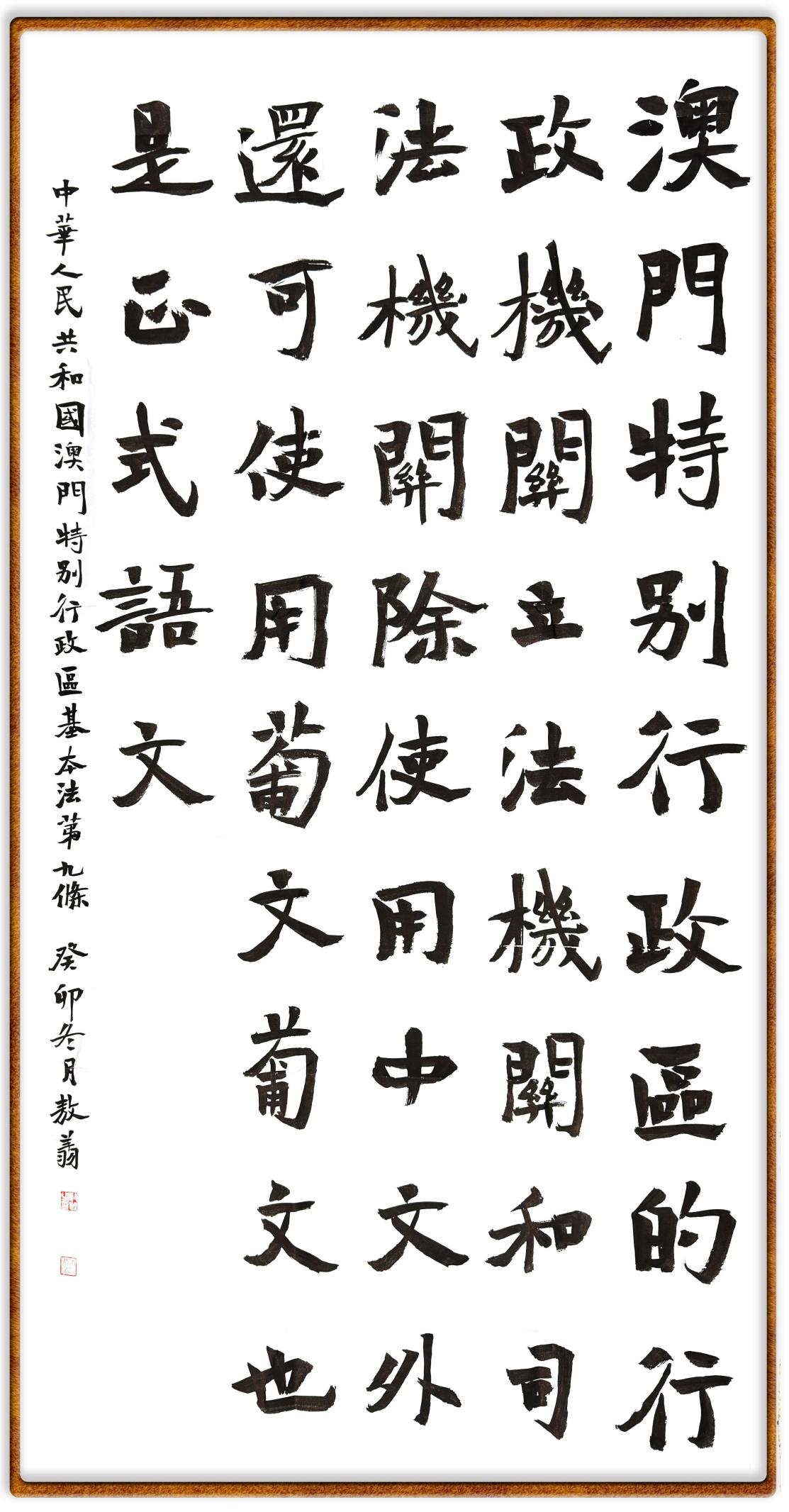 澳門基本法第九條 澳門特別行政區(qū)的行政機(jī)關(guān)、立法機(jī)關(guān)和司法機(jī)關(guān),除使用中文外,還可使用葡文,葡文也是正式語文。
