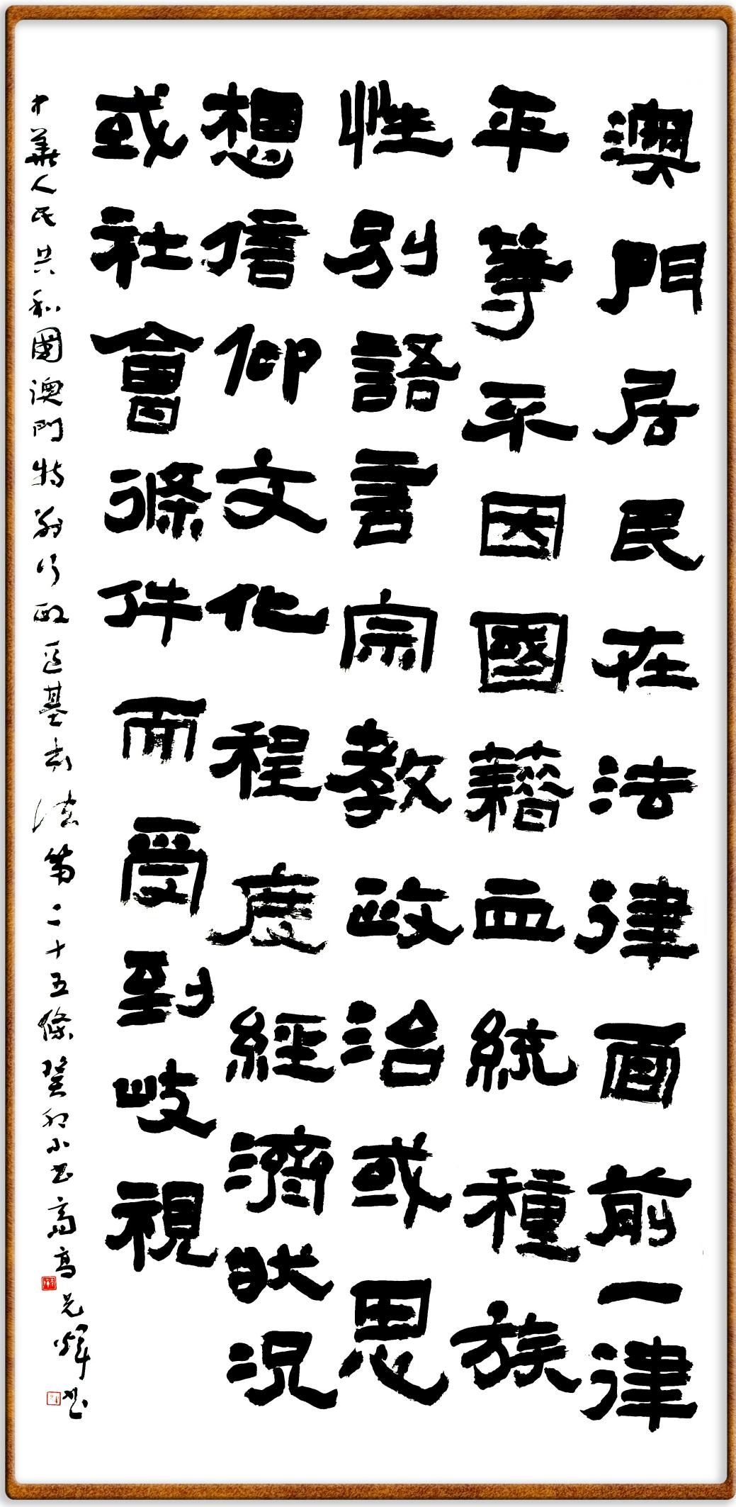 澳門基本法第二十五條 澳門居民在法律面前一律平等,不因國籍、血統(tǒng)、種族、性別、語言、宗教、政治或思想信仰、文化程度、經(jīng)濟(jì)狀況或社會(huì)條件而受到歧視。