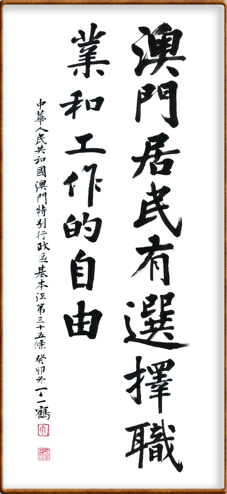 澳門基本法第三十五條 澳門居民有選擇職業(yè)和工作的自由。