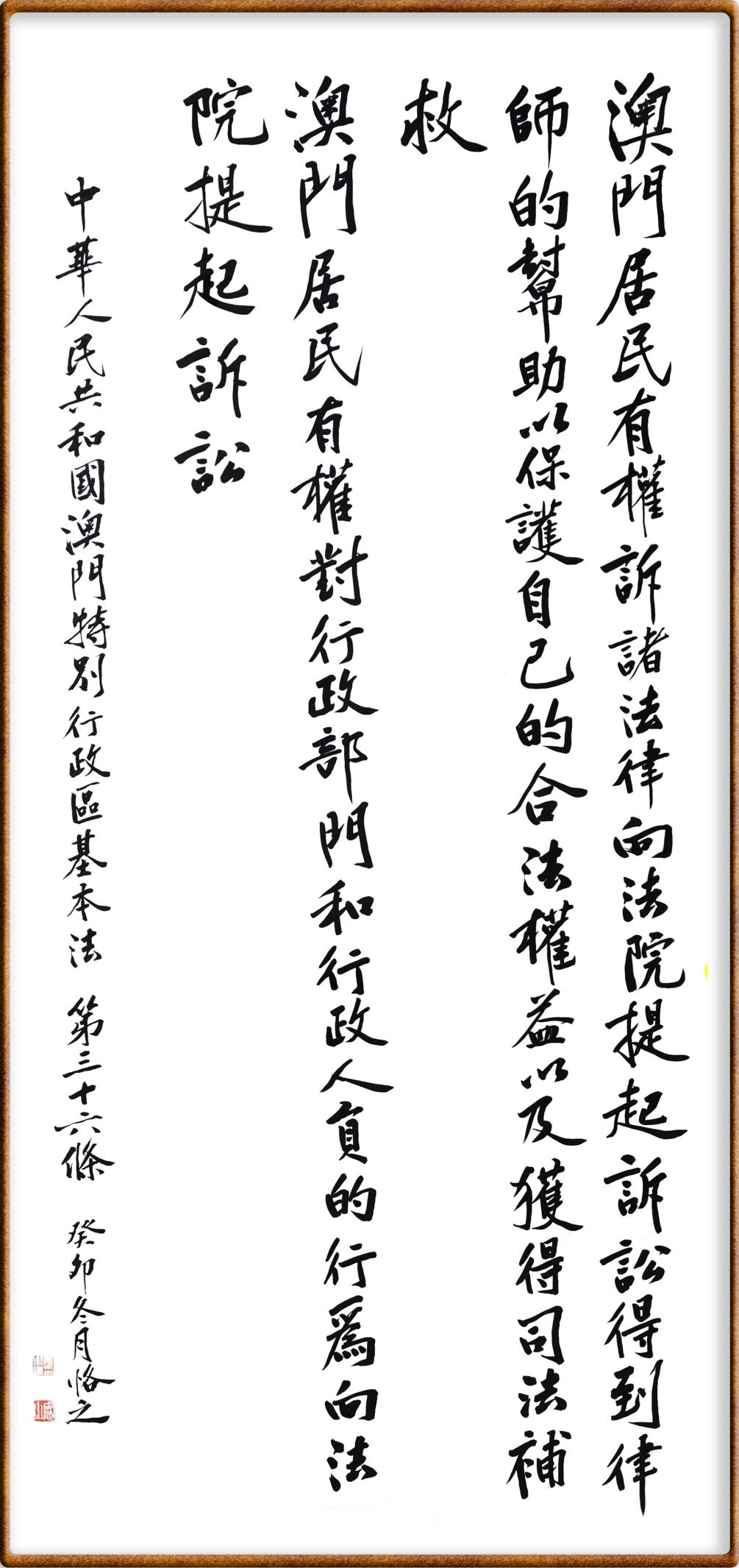 澳門基本法第三十六條 澳門居民有權(quán)訴諸法律,向法院提起訴訟,得到律師的幫助以保護(hù)自己的合法權(quán)益,以及獲得司法補(bǔ)救。