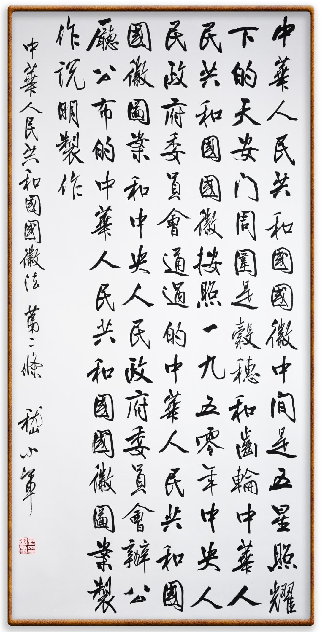 中華人民共和國國徽按照1950年中央人民政府委員會通過的《中華人民共和國國徽圖案》和中央人民政府委員會辦公廳公布的《中華人民共和國國徽圖案制作說明》制作。
