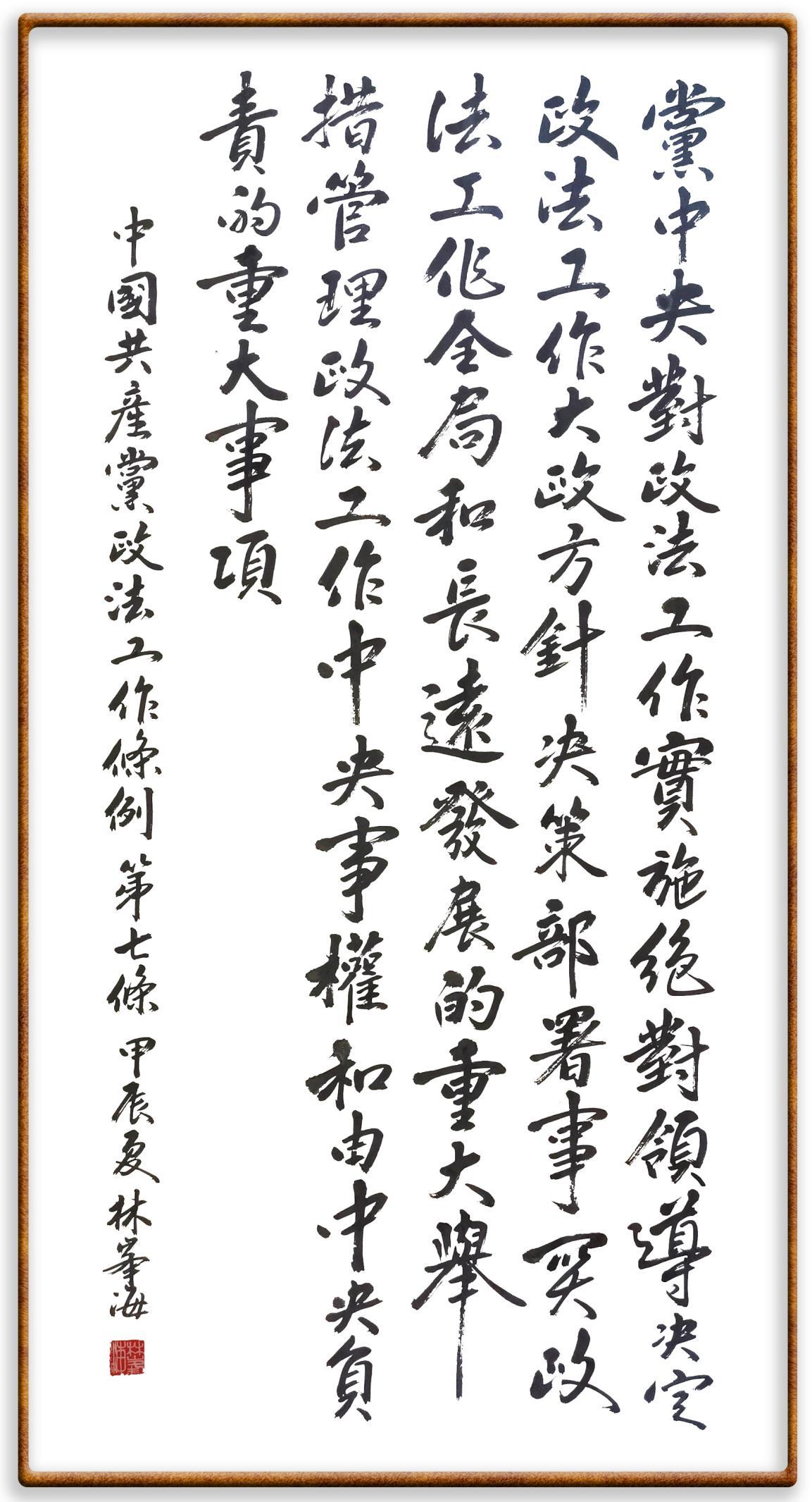 《中國(guó)共產(chǎn)黨政法工作條例》對(duì)黨領(lǐng)導(dǎo)新時(shí)代政法工作進(jìn)行全面制度擘畫(huà),為黨領(lǐng)導(dǎo)政法工作提供基本遵循,具有重大而深遠(yuǎn)的意義。為學(xué)習(xí)好、宣傳好、貫徹好、實(shí)施好這部黨內(nèi)法規(guī),繼《中華人民共和國(guó)民法典》《中華人民共和國(guó)憲法》《信訪工作條例》《中華人民共和國(guó)澳門特別行政區(qū)基本法》《中華人民共和國(guó)香港特別行政區(qū)基本法》等法律法規(guī)之后,“書(shū)·法”系列活動(dòng)將筆端對(duì)準(zhǔn)《中國(guó)共產(chǎn)黨政法工作條例》。