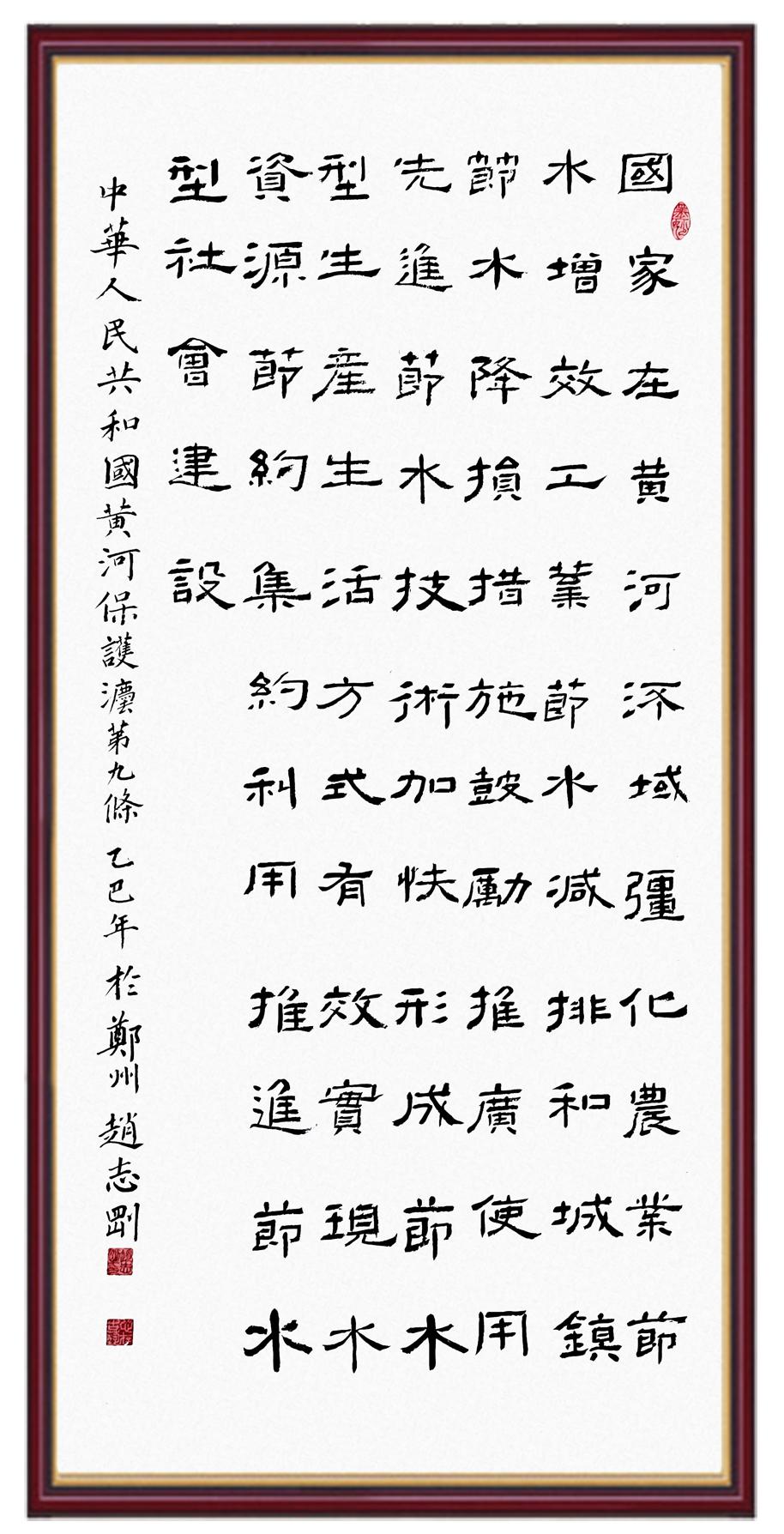 黃河寧,天下平。黃河是中華民族的發(fā)源地和搖籃,保護(hù)黃河是事關(guān)中華民族偉大復(fù)興的千秋大計(jì)?!吨腥A人民共和國(guó)黃河保護(hù)法》為推進(jìn)水資源節(jié)約集約利用、保護(hù)傳承弘揚(yáng)黃河文化、推動(dòng)黃河流域生態(tài)保護(hù)和高質(zhì)量發(fā)展提供了有力法治保障。繼書(shū)寫(xiě)《中華人民共和國(guó)民法典》《中華人民共和國(guó)憲法》《中華人民共和國(guó)澳門(mén)特別行政區(qū)基本法》《中華人民共和國(guó)香港特別行政區(qū)基本法》《中華人民共和國(guó)國(guó)旗法》《中華人民共和國(guó)國(guó)徽法》《中華人民共和國(guó)國(guó)歌法》《中華人民共和國(guó)法官法》等法律法規(guī)之后,法制日?qǐng)?bào)社聯(lián)合沿黃九?。▍^(qū))司法廳、書(shū)法家協(xié)會(huì),將筆端對(duì)準(zhǔn)《中華人民共和國(guó)黃河保護(hù)法》。