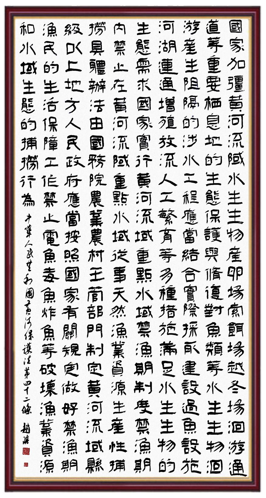 黃河寧,天下平。黃河是中華民族的發(fā)源地和搖籃,保護(hù)黃河是事關(guān)中華民族偉大復(fù)興的千秋大計(jì)?!吨腥A人民共和國黃河保護(hù)法》為推進(jìn)水資源節(jié)約集約利用、保護(hù)傳承弘揚(yáng)黃河文化、推動黃河流域生態(tài)保護(hù)和高質(zhì)量發(fā)展提供了有力法治保障。繼書寫《中華人民共和國民法典》《中華人民共和國憲法》《中華人民共和國澳門特別行政區(qū)基本法》《中華人民共和國香港特別行政區(qū)基本法》《中華人民共和國國旗法》《中華人民共和國國徽法》《中華人民共和國國歌法》《中華人民共和國法官法》等法律法規(guī)之后,法制日報社聯(lián)合沿黃九省(區(qū))司法廳、書法家協(xié)會,將筆端對準(zhǔn)《中華人民共和國黃河保護(hù)法》。