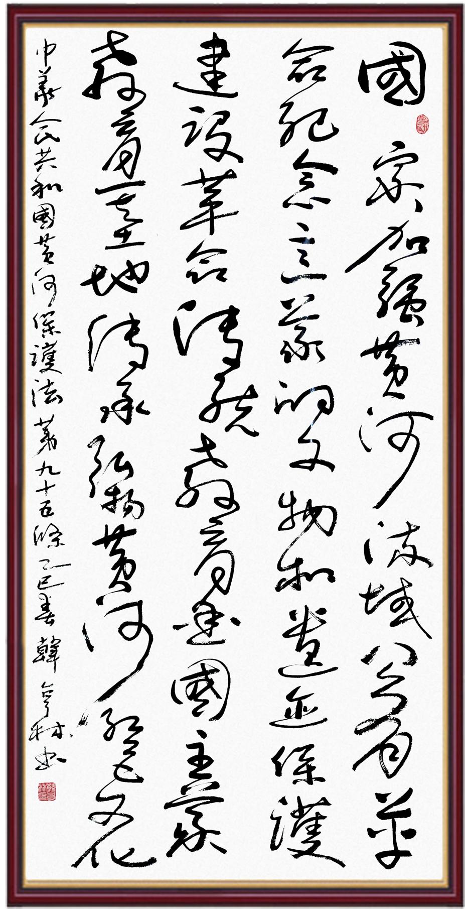 黃河寧,天下平。黃河是中華民族的發(fā)源地和搖籃,保護黃河是事關中華民族偉大復興的千秋大計?!吨腥A人民共和國黃河保護法》為推進水資源節(jié)約集約利用、保護傳承弘揚黃河文化、推動黃河流域生態(tài)保護和高質量發(fā)展提供了有力法治保障。繼書寫《中華人民共和國民法典》《中華人民共和國憲法》《中華人民共和國澳門特別行政區(qū)基本法》《中華人民共和國香港特別行政區(qū)基本法》《中華人民共和國國旗法》《中華人民共和國國徽法》《中華人民共和國國歌法》《中華人民共和國法官法》等法律法規(guī)之后,法制日報社聯(lián)合沿黃九省(區(qū))司法廳、書法家協(xié)會,將筆端對準《中華人民共和國黃河保護法》。