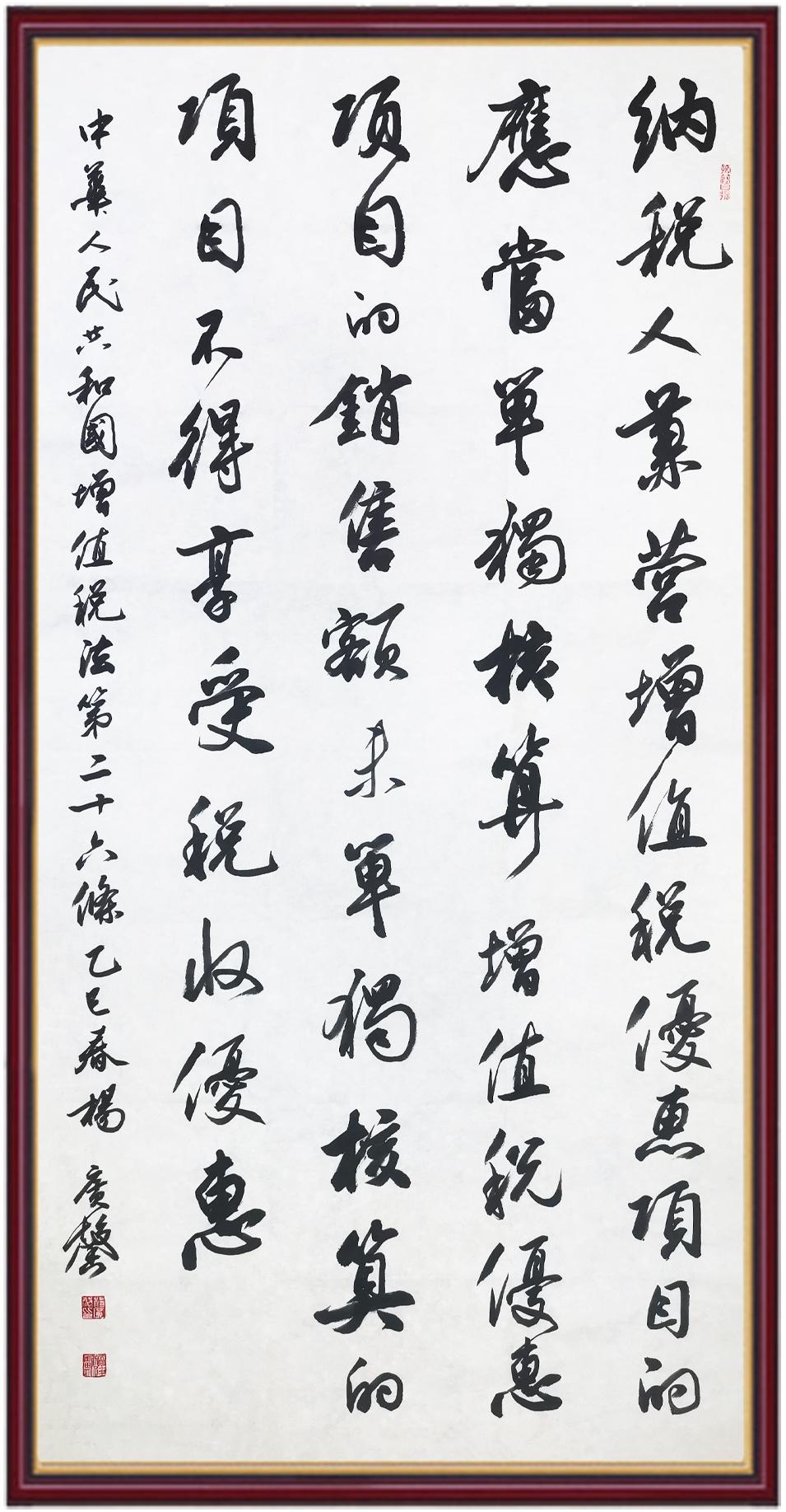稅收一頭連著國計,一頭連著民生。全面推進(jìn)依法治稅,是全面依法治國基本方略在稅收領(lǐng)域的集中體現(xiàn)。《中華人民共和國增值稅法》將于2026年1月1日起施行,對全面落實稅收法定原則、健全有利于高質(zhì)量發(fā)展的增值稅制度、規(guī)范增值稅的征收和繳納、保護(hù)納稅人合法權(quán)益具有重要意義。繼書寫《中華人民共和國民法典》《中華人民共和國憲法》《中華人民共和國國旗法》《中華人民共和國國徽法》《中華人民共和國國歌法》《中華人民共和國法官法》《中華人民共和國黃河保護(hù)法》等法律法規(guī)之后,法制日報社將筆端對準(zhǔn)《中華人民共和國增值稅法》。
