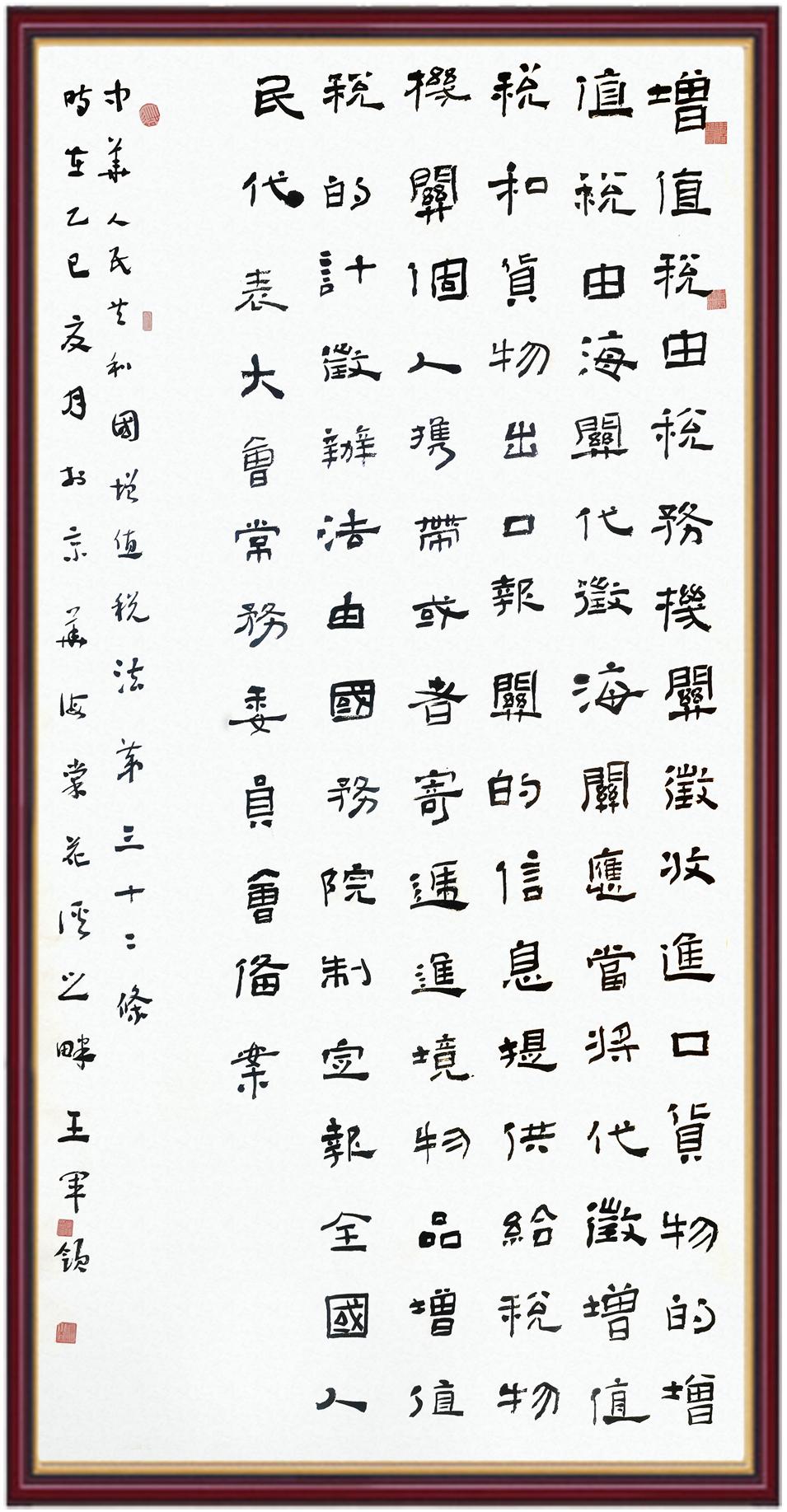 稅收一頭連著國(guó)計(jì),一頭連著民生。全面推進(jìn)依法治稅,是全面依法治國(guó)基本方略在稅收領(lǐng)域的集中體現(xiàn)?!吨腥A人民共和國(guó)增值稅法》將于2026年1月1日起施行,對(duì)全面落實(shí)稅收法定原則、健全有利于高質(zhì)量發(fā)展的增值稅制度、規(guī)范增值稅的征收和繳納、保護(hù)納稅人合法權(quán)益具有重要意義。繼書寫《中華人民共和國(guó)民法典》《中華人民共和國(guó)憲法》《中華人民共和國(guó)國(guó)旗法》《中華人民共和國(guó)國(guó)徽法》《中華人民共和國(guó)國(guó)歌法》《中華人民共和國(guó)法官法》《中華人民共和國(guó)黃河保護(hù)法》等法律法規(guī)之后,法制日?qǐng)?bào)社將筆端對(duì)準(zhǔn)《中華人民共和國(guó)增值稅法》。