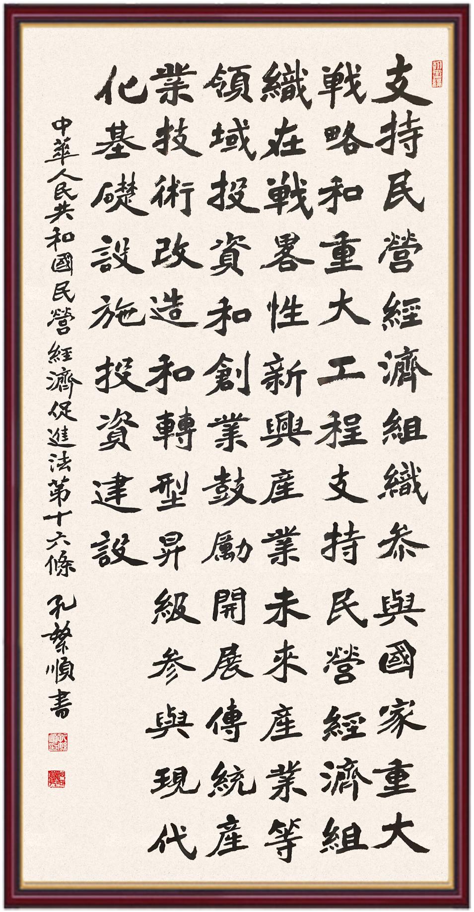 《中華人民共和國民營經(jīng)濟(jì)促進(jìn)法》自今年5月20日起施行。作為我國首部專門關(guān)于民營經(jīng)濟(jì)發(fā)展的基礎(chǔ)性法律,民營經(jīng)濟(jì)促進(jìn)法將支持和保障民營經(jīng)濟(jì)發(fā)展的法律制度融入中國特色社會主義法律體系,具有重大的法治意義,為促進(jìn)民營經(jīng)濟(jì)持續(xù)、健康、高質(zhì)量發(fā)展提供了堅實的法治保障。為更好地學(xué)習(xí)、宣傳、貫徹這部法律,法治日報社聯(lián)合司法部普法與依法治理局,開展“‘書·法’系列活動之書寫《中華人民共和國民營經(jīng)濟(jì)促進(jìn)法》”活動。