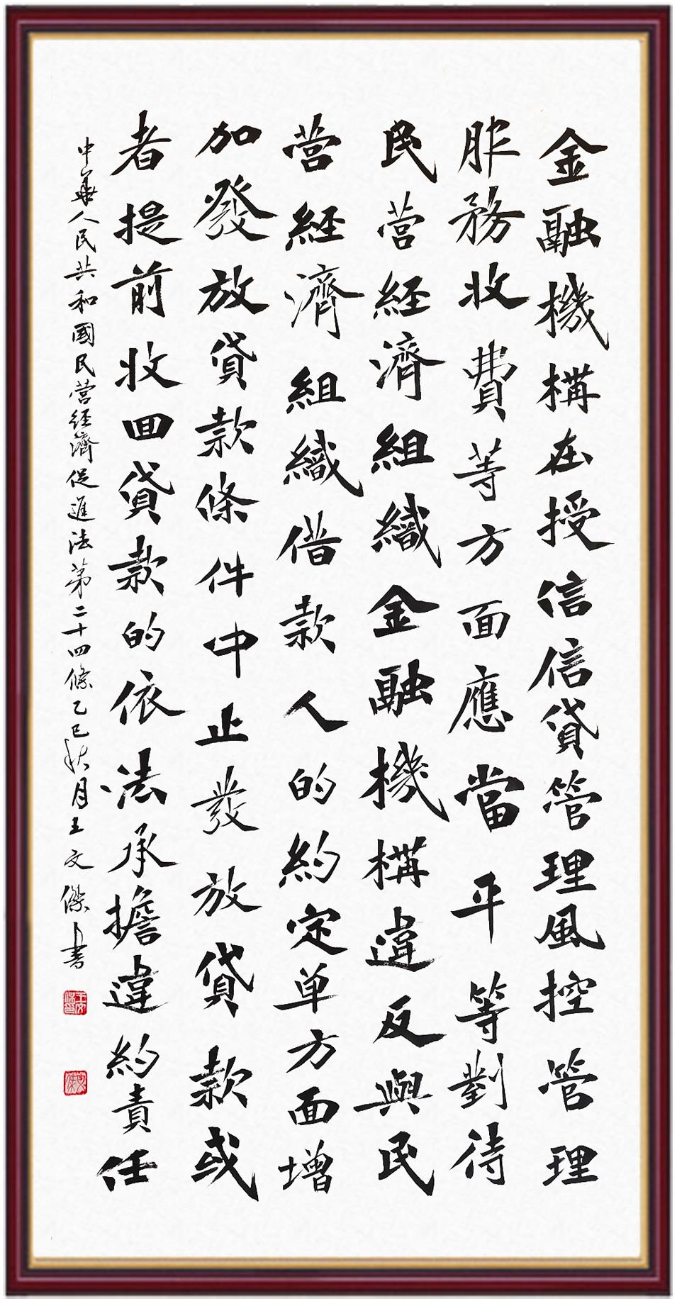 《中華人民共和國(guó)民營(yíng)經(jīng)濟(jì)促進(jìn)法》自今年5月20日起施行。作為我國(guó)首部專門關(guān)于民營(yíng)經(jīng)濟(jì)發(fā)展的基礎(chǔ)性法律,民營(yíng)經(jīng)濟(jì)促進(jìn)法將支持和保障民營(yíng)經(jīng)濟(jì)發(fā)展的法律制度融入中國(guó)特色社會(huì)主義法律體系,具有重大的法治意義,為促進(jìn)民營(yíng)經(jīng)濟(jì)持續(xù)、健康、高質(zhì)量發(fā)展提供了堅(jiān)實(shí)的法治保障。為更好地學(xué)習(xí)、宣傳、貫徹這部法律,法治日?qǐng)?bào)社聯(lián)合司法部普法與依法治理局,開展“‘書·法’系列活動(dòng)之書寫《中華人民共和國(guó)民營(yíng)經(jīng)濟(jì)促進(jìn)法》”活動(dòng)。