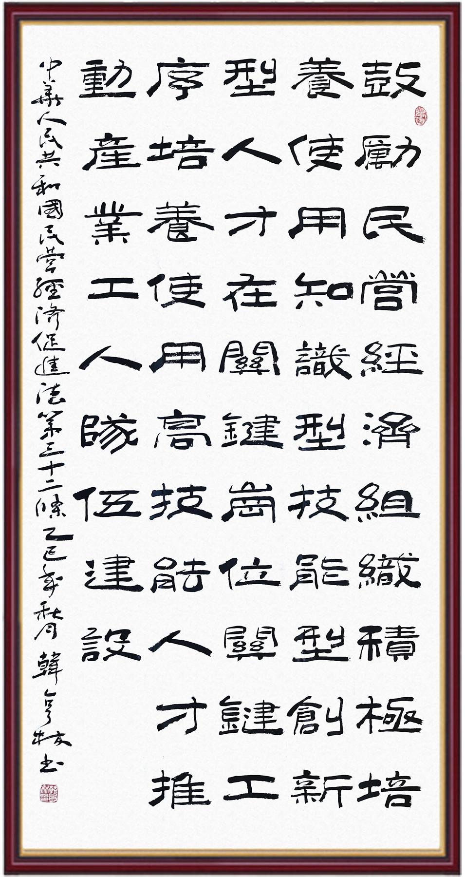 《中華人民共和國民營經(jīng)濟促進法》自今年5月20日起施行。作為我國首部專門關(guān)于民營經(jīng)濟發(fā)展的基礎(chǔ)性法律,民營經(jīng)濟促進法將支持和保障民營經(jīng)濟發(fā)展的法律制度融入中國特色社會主義法律體系,具有重大的法治意義,為促進民營經(jīng)濟持續(xù)、健康、高質(zhì)量發(fā)展提供了堅實的法治保障。為更好地學(xué)習(xí)、宣傳、貫徹這部法律,法治日報社聯(lián)合司法部普法與依法治理局,開展“‘書·法’系列活動之書寫《中華人民共和國民營經(jīng)濟促進法》”活動。