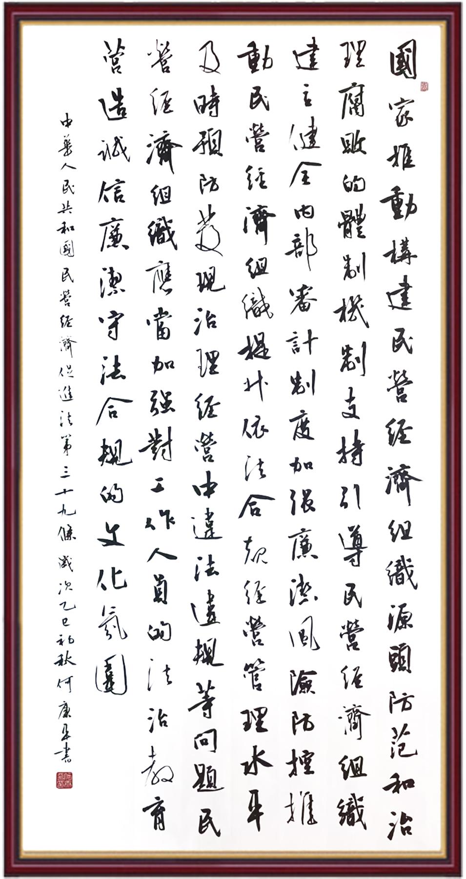 《中華人民共和國民營經(jīng)濟促進(jìn)法》自今年5月20日起施行。作為我國首部專門關(guān)于民營經(jīng)濟發(fā)展的基礎(chǔ)性法律,民營經(jīng)濟促進(jìn)法將支持和保障民營經(jīng)濟發(fā)展的法律制度融入中國特色社會主義法律體系,具有重大的法治意義,為促進(jìn)民營經(jīng)濟持續(xù)、健康、高質(zhì)量發(fā)展提供了堅實的法治保障。為更好地學(xué)習(xí)、宣傳、貫徹這部法律,法治日報社聯(lián)合司法部普法與依法治理局,開展“‘書·法’系列活動之書寫《中華人民共和國民營經(jīng)濟促進(jìn)法》”活動。