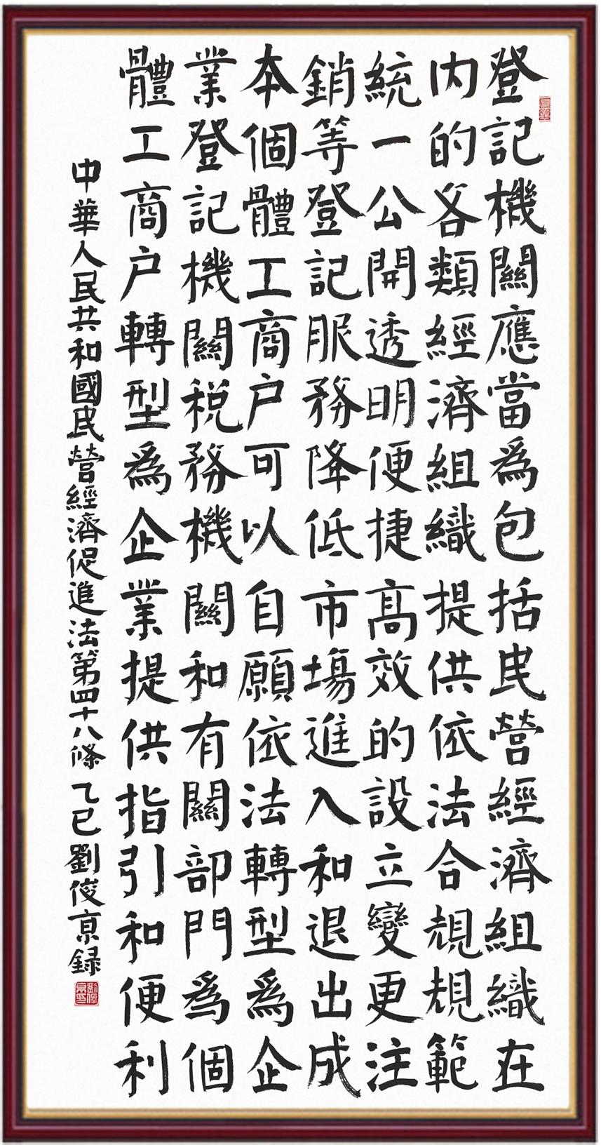 《中華人民共和國民營經(jīng)濟促進法》自今年5月20日起施行。作為我國首部專門關(guān)于民營經(jīng)濟發(fā)展的基礎(chǔ)性法律,民營經(jīng)濟促進法將支持和保障民營經(jīng)濟發(fā)展的法律制度融入中國特色社會主義法律體系,具有重大的法治意義,為促進民營經(jīng)濟持續(xù)、健康、高質(zhì)量發(fā)展提供了堅實的法治保障。為更好地學(xué)習、宣傳、貫徹這部法律,法治日報社聯(lián)合司法部普法與依法治理局,開展“‘書·法’系列活動之書寫《中華人民共和國民營經(jīng)濟促進法》”活動。