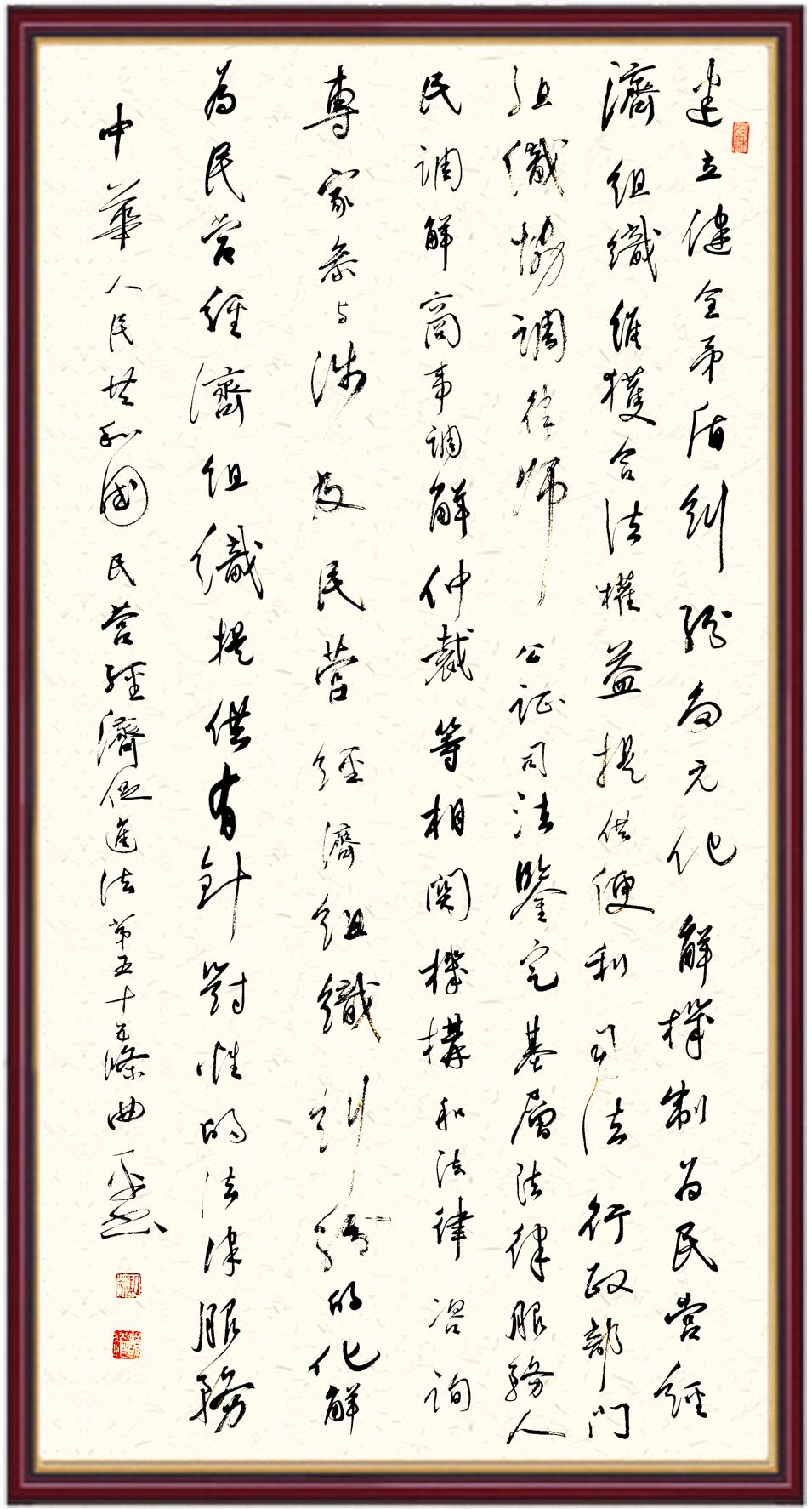 《中華人民共和國(guó)民營(yíng)經(jīng)濟(jì)促進(jìn)法》自今年5月20日起施行。作為我國(guó)首部專門關(guān)于民營(yíng)經(jīng)濟(jì)發(fā)展的基礎(chǔ)性法律,民營(yíng)經(jīng)濟(jì)促進(jìn)法將支持和保障民營(yíng)經(jīng)濟(jì)發(fā)展的法律制度融入中國(guó)特色社會(huì)主義法律體系,具有重大的法治意義,為促進(jìn)民營(yíng)經(jīng)濟(jì)持續(xù)、健康、高質(zhì)量發(fā)展提供了堅(jiān)實(shí)的法治保障。為更好地學(xué)習(xí)、宣傳、貫徹這部法律,法治日?qǐng)?bào)社聯(lián)合司法部普法與依法治理局,開(kāi)展“‘書·法’系列活動(dòng)之書寫《中華人民共和國(guó)民營(yíng)經(jīng)濟(jì)促進(jìn)法》”活動(dòng)。