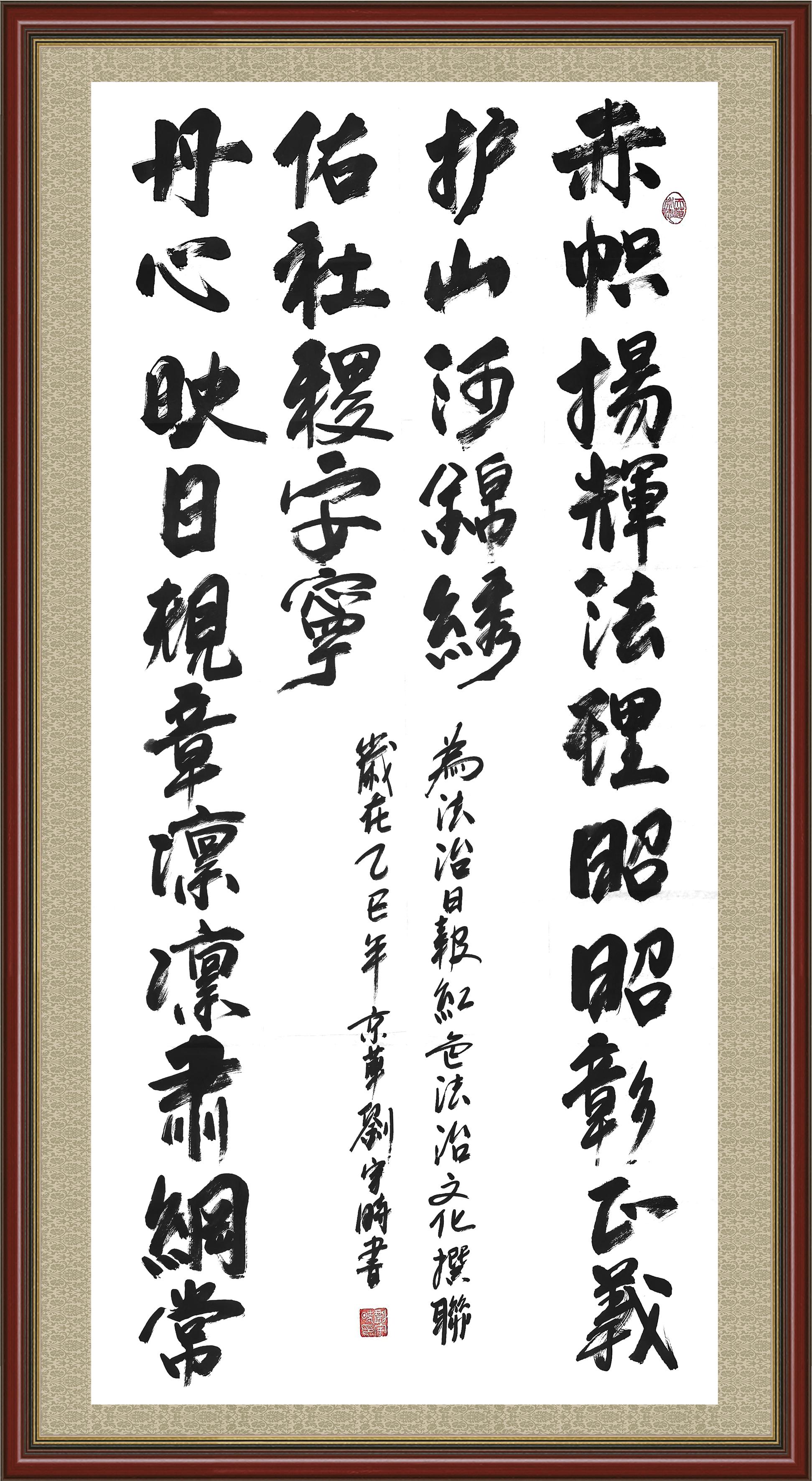 赤幟揚輝,法理昭昭彰正義,護山河錦繡;