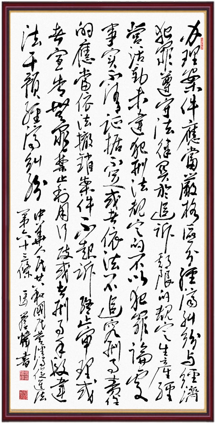 2020年7月11日,由法治日報(bào)社主辦、法報(bào)文化傳媒(北京)有限公司和北京千音文化傳媒有限公司聯(lián)合承辦的“書·法”系列活動(dòng)正式啟動(dòng)?!皶しā被顒?dòng)旨在為創(chuàng)新法治宣傳教育,多開一點(diǎn)腦洞、多花一點(diǎn)心思、多出一點(diǎn)力量、多作一點(diǎn)貢獻(xiàn),引領(lǐng)和推動(dòng)更多的人拿起筆來學(xué)法、寫法,在不斷“書·法”過程中,提升自身的法治素養(yǎng),在全社會(huì)弘揚(yáng)法治精神。先后書寫《中華人民共和國民法典》《中華人民共和國憲法》《中華人民共和國澳門特別行政區(qū)基本法》《中華人民共和國香港特別行政區(qū)基本法》《中華人民共和國國旗法》《中華人民共和國國徽法》《中華人民共和國國歌法》《中華人民共和國法官法》《中華人民共和國黃河保護(hù)法》等19部法律法規(guī)。