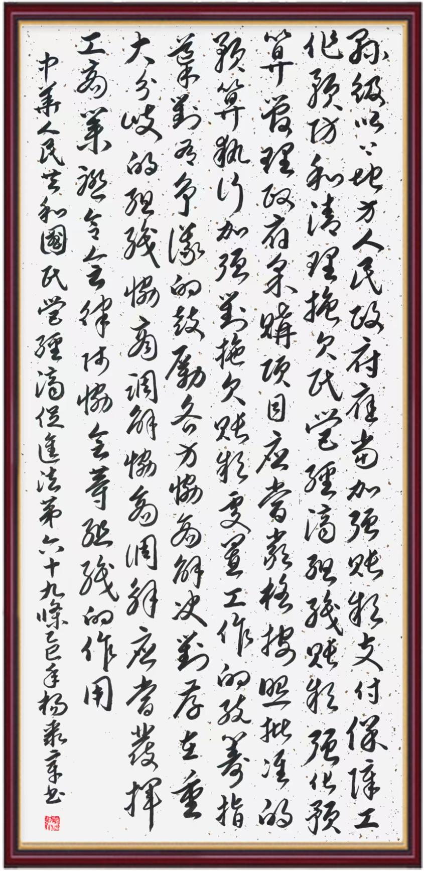 2020年7月11日,由法治日報(bào)社主辦、法報(bào)文化傳媒(北京)有限公司和北京千音文化傳媒有限公司聯(lián)合承辦的“書·法”系列活動(dòng)正式啟動(dòng)?!皶しā被顒?dòng)旨在為創(chuàng)新法治宣傳教育,多開一點(diǎn)腦洞、多花一點(diǎn)心思、多出一點(diǎn)力量、多作一點(diǎn)貢獻(xiàn),引領(lǐng)和推動(dòng)更多的人拿起筆來學(xué)法、寫法,在不斷“書·法”過程中,提升自身的法治素養(yǎng),在全社會(huì)弘揚(yáng)法治精神。先后書寫《中華人民共和國民法典》《中華人民共和國憲法》《中華人民共和國澳門特別行政區(qū)基本法》《中華人民共和國香港特別行政區(qū)基本法》《中華人民共和國國旗法》《中華人民共和國國徽法》《中華人民共和國國歌法》《中華人民共和國法官法》《中華人民共和國黃河保護(hù)法》等19部法律法規(guī)。