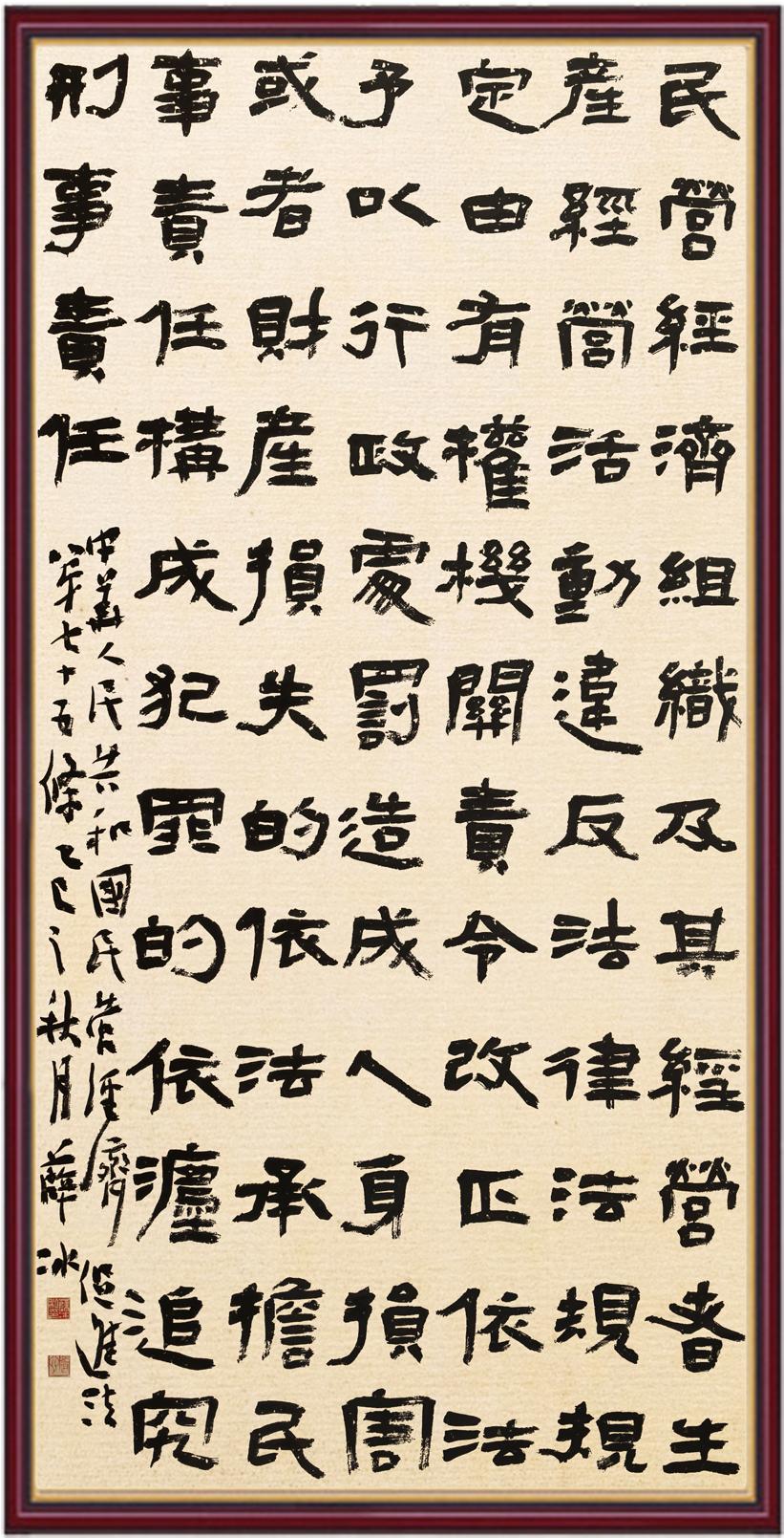 2020年7月11日,由法治日報(bào)社主辦、法報(bào)文化傳媒(北京)有限公司和北京千音文化傳媒有限公司聯(lián)合承辦的“書·法”系列活動正式啟動?!皶しā被顒又荚跒閯?chuàng)新法治宣傳教育,多開一點(diǎn)腦洞、多花一點(diǎn)心思、多出一點(diǎn)力量、多作一點(diǎn)貢獻(xiàn),引領(lǐng)和推動更多的人拿起筆來學(xué)法、寫法,在不斷“書·法”過程中,提升自身的法治素養(yǎng),在全社會弘揚(yáng)法治精神。先后書寫《中華人民共和國民法典》《中華人民共和國憲法》《中華人民共和國澳門特別行政區(qū)基本法》《中華人民共和國香港特別行政區(qū)基本法》《中華人民共和國國旗法》《中華人民共和國國徽法》《中華人民共和國國歌法》《中華人民共和國法官法》《中華人民共和國黃河保護(hù)法》等19部法律法規(guī)。