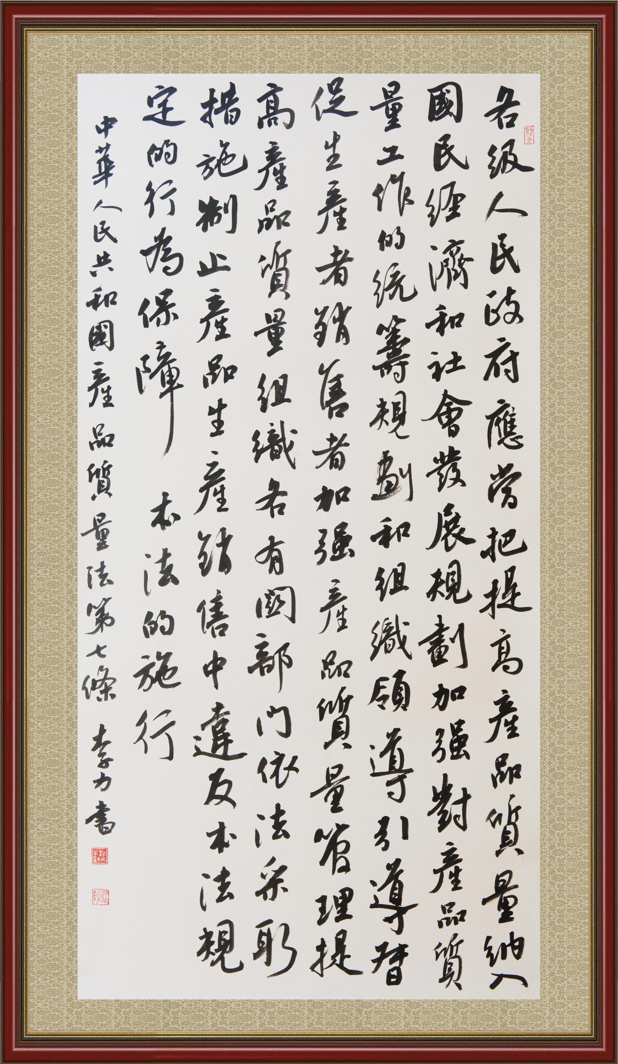 《中華人民共和國產(chǎn)品質(zhì)量法》自1993年9月1日起開始施行,先后進(jìn)行三次修正。作為產(chǎn)品質(zhì)量領(lǐng)域的基本法律,產(chǎn)品質(zhì)量法對規(guī)范產(chǎn)品質(zhì)量管理、維護(hù)消費(fèi)者合法權(quán)益、促進(jìn)經(jīng)濟(jì)社會發(fā)展具有重要意義。為更好地學(xué)習(xí)、宣傳、貫徹這部法律,在國家市場監(jiān)督管理總局法規(guī)司的支持下,法治日報社開展了“‘書·法’系列活動之書寫《中華人民共和國產(chǎn)品質(zhì)量法》”活動。