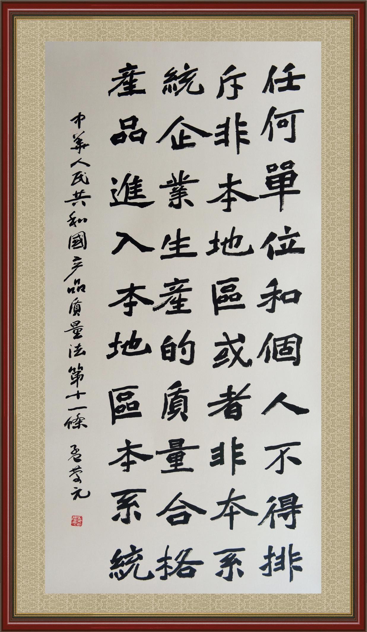 《中華人民共和國(guó)產(chǎn)品質(zhì)量法》自1993年9月1日起開(kāi)始施行,先后進(jìn)行三次修正。作為產(chǎn)品質(zhì)量領(lǐng)域的基本法律,產(chǎn)品質(zhì)量法對(duì)規(guī)范產(chǎn)品質(zhì)量管理、維護(hù)消費(fèi)者合法權(quán)益、促進(jìn)經(jīng)濟(jì)社會(huì)發(fā)展具有重要意義。為更好地學(xué)習(xí)、宣傳、貫徹這部法律,在國(guó)家市場(chǎng)監(jiān)督管理總局法規(guī)司的支持下,法治日?qǐng)?bào)社開(kāi)展了“‘書(shū)·法’系列活動(dòng)之書(shū)寫(xiě)《中華人民共和國(guó)產(chǎn)品質(zhì)量法》”活動(dòng)。
