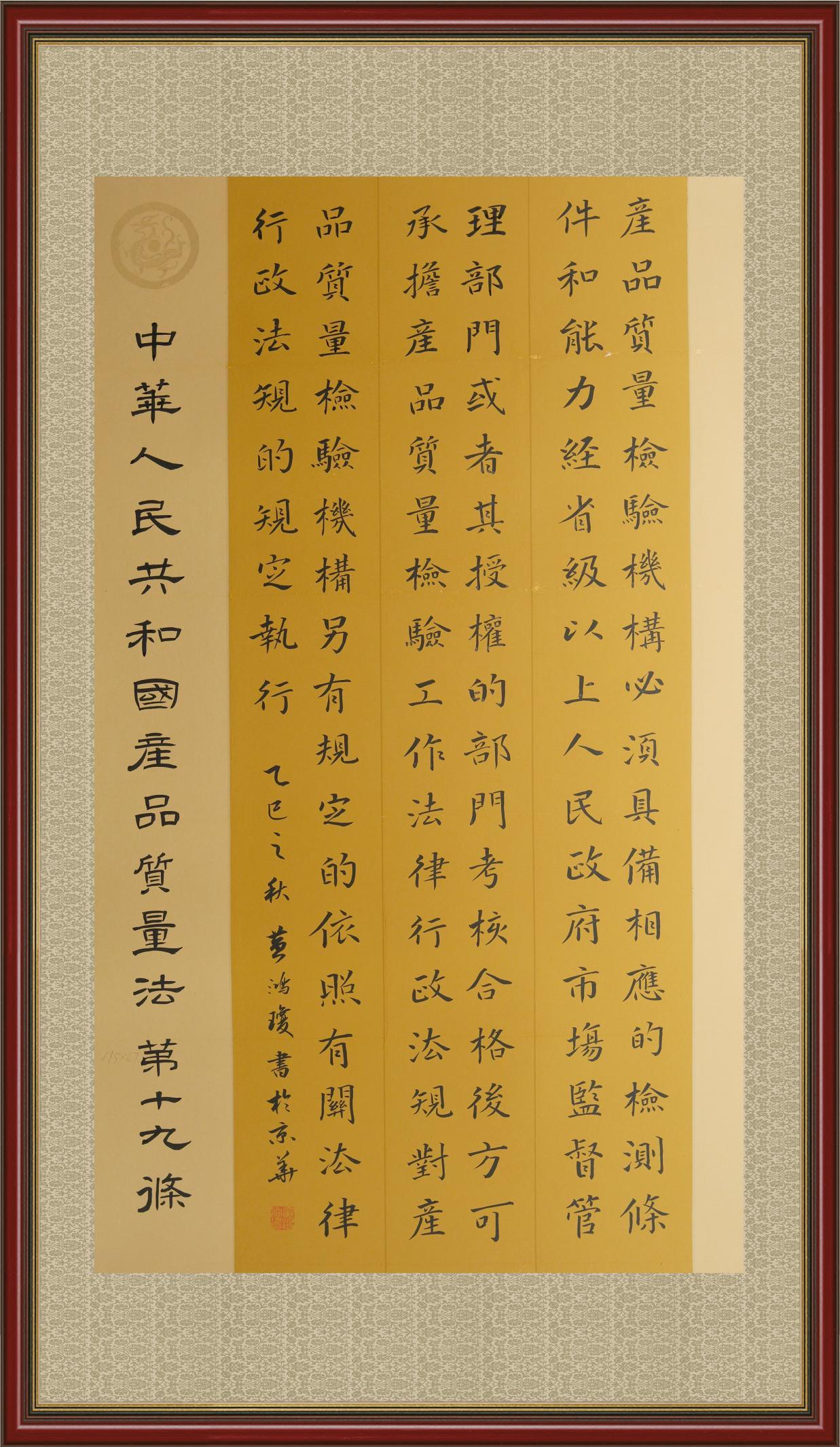 《中華人民共和國(guó)產(chǎn)品質(zhì)量法》自1993年9月1日起開始施行,先后進(jìn)行三次修正。作為產(chǎn)品質(zhì)量領(lǐng)域的基本法律,產(chǎn)品質(zhì)量法對(duì)規(guī)范產(chǎn)品質(zhì)量管理、維護(hù)消費(fèi)者合法權(quán)益、促進(jìn)經(jīng)濟(jì)社會(huì)發(fā)展具有重要意義。為更好地學(xué)習(xí)、宣傳、貫徹這部法律,在國(guó)家市場(chǎng)監(jiān)督管理總局法規(guī)司的支持下,法治日?qǐng)?bào)社開展了“‘書·法’系列活動(dòng)之書寫《中華人民共和國(guó)產(chǎn)品質(zhì)量法》”活動(dòng)。
