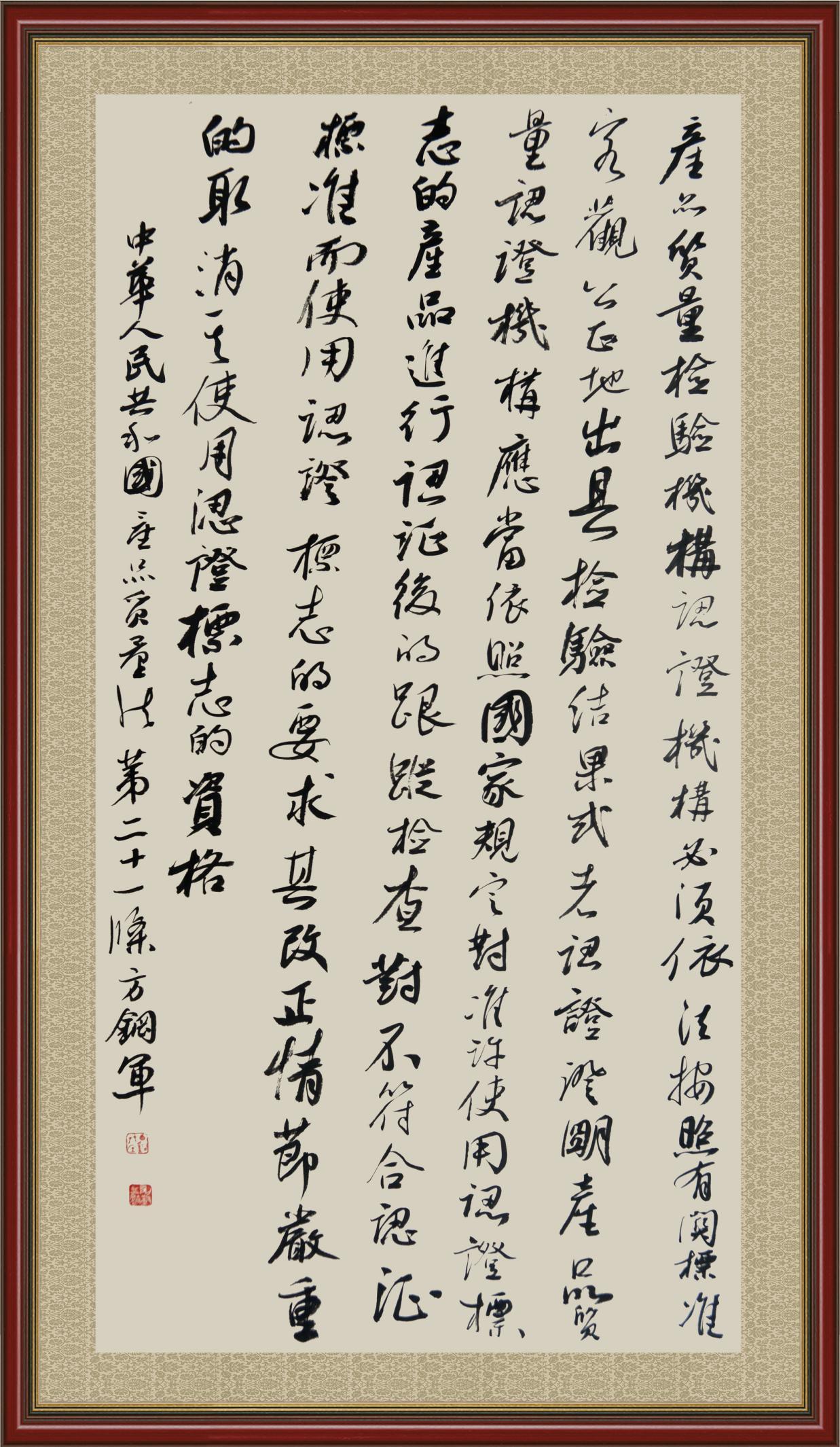 《中華人民共和國產(chǎn)品質(zhì)量法》自1993年9月1日起開始施行,先后進行三次修正。作為產(chǎn)品質(zhì)量領域的基本法律,產(chǎn)品質(zhì)量法對規(guī)范產(chǎn)品質(zhì)量管理、維護消費者合法權益、促進經(jīng)濟社會發(fā)展具有重要意義。為更好地學習、宣傳、貫徹這部法律,在國家市場監(jiān)督管理總局法規(guī)司的支持下,法治日報社開展了“‘書·法’系列活動之書寫《中華人民共和國產(chǎn)品質(zhì)量法》”活動。