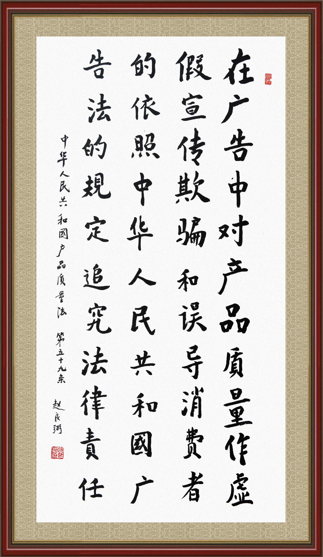 《中華人民共和國產(chǎn)品質(zhì)量法》自1993年9月1日起開始施行,先后進行三次修正。作為產(chǎn)品質(zhì)量領(lǐng)域的基本法律,產(chǎn)品質(zhì)量法對規(guī)范產(chǎn)品質(zhì)量管理、維護消費者合法權(quán)益、促進經(jīng)濟社會發(fā)展具有重要意義。為更好地學(xué)習(xí)、宣傳、貫徹這部法律,在國家市場監(jiān)督管理總局法規(guī)司的支持下,法治日報社開展了“‘書·法’系列活動之書寫《中華人民共和國產(chǎn)品質(zhì)量法》”活動。