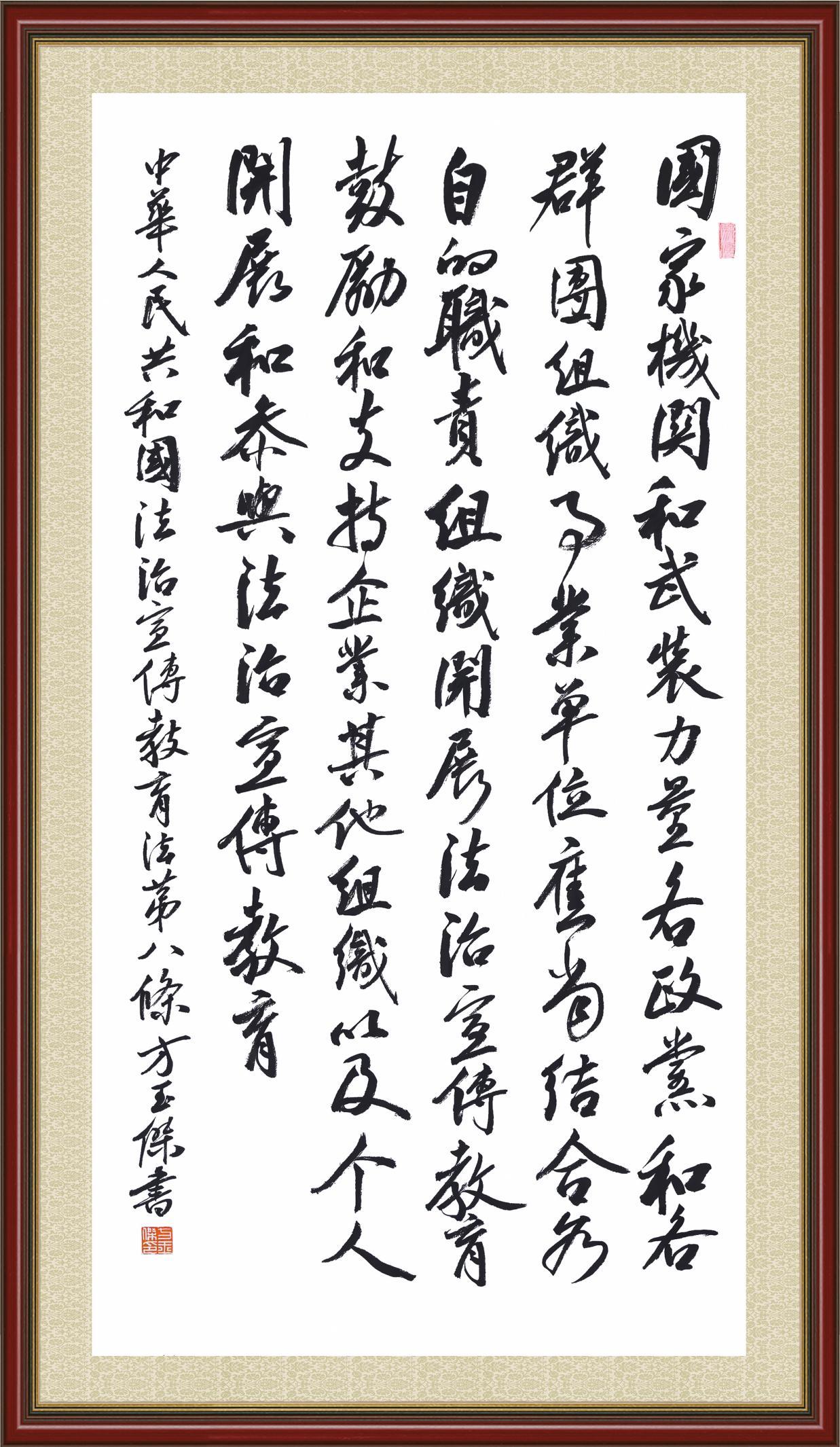 2020年7月11日,由法治日報(bào)社主辦的“書·法”系列活動正式啟動,先后書寫《中華人民共和國民法典》《中華人民共和國憲法》《中華人民共和國民營經(jīng)濟(jì)促進(jìn)法》等21部法律法規(guī)。