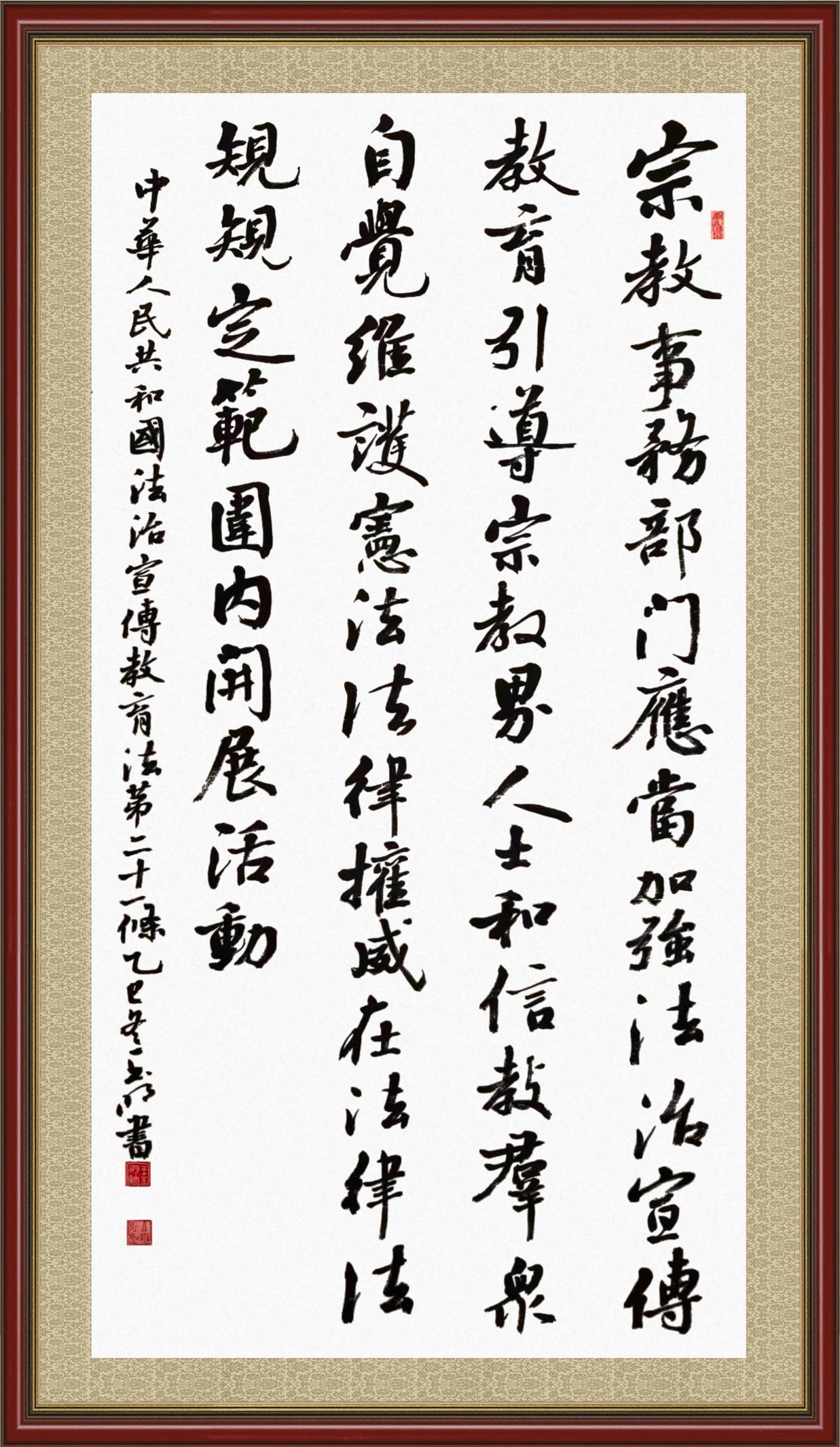 2020年7月11日,由法治日?qǐng)?bào)社主辦的“書·法”系列活動(dòng)正式啟動(dòng),先后書寫《中華人民共和國民法典》《中華人民共和國憲法》《中華人民共和國民營經(jīng)濟(jì)促進(jìn)法》等21部法律法規(guī)。