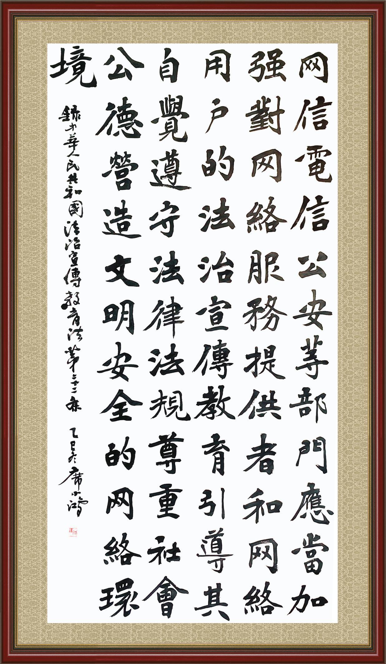 2020年7月11日,由法治日報社主辦的“書·法”系列活動正式啟動,先后書寫《中華人民共和國民法典》《中華人民共和國憲法》《中華人民共和國民營經(jīng)濟促進法》等21部法律法規(guī)。