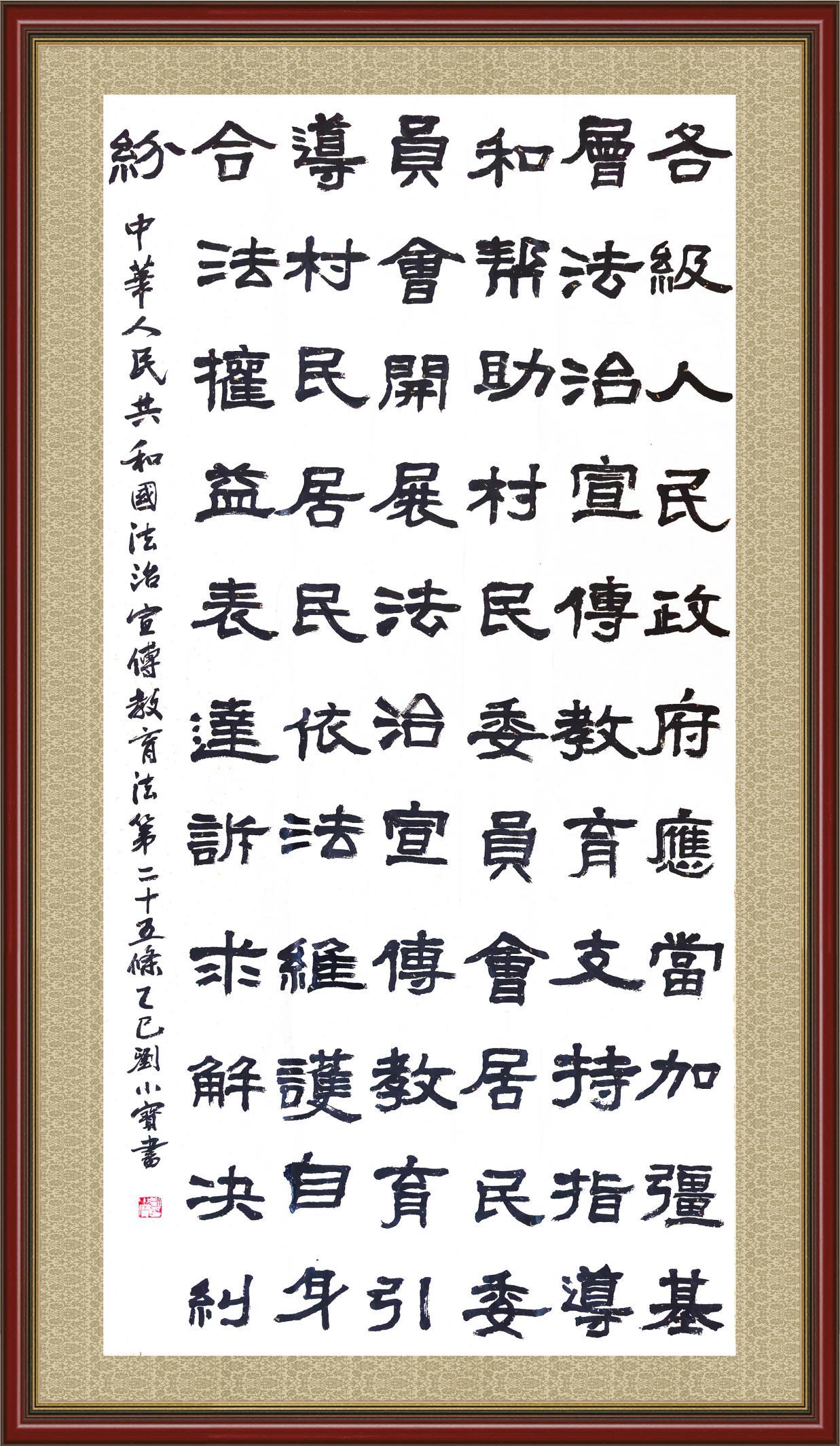 2020年7月11日,由法治日報社主辦的“書·法”系列活動正式啟動,先后書寫《中華人民共和國民法典》《中華人民共和國憲法》《中華人民共和國民營經(jīng)濟促進法》等21部法律法規(guī)。