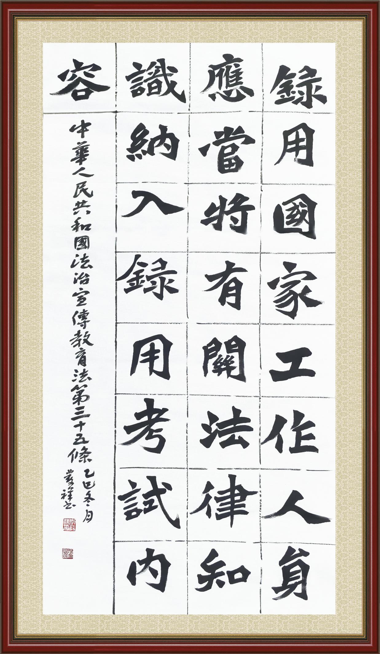 2020年7月11日,由法治日?qǐng)?bào)社主辦的“書·法”系列活動(dòng)正式啟動(dòng),先后書寫《中華人民共和國(guó)民法典》《中華人民共和國(guó)憲法》《中華人民共和國(guó)民營(yíng)經(jīng)濟(jì)促進(jìn)法》等21部法律法規(guī)。