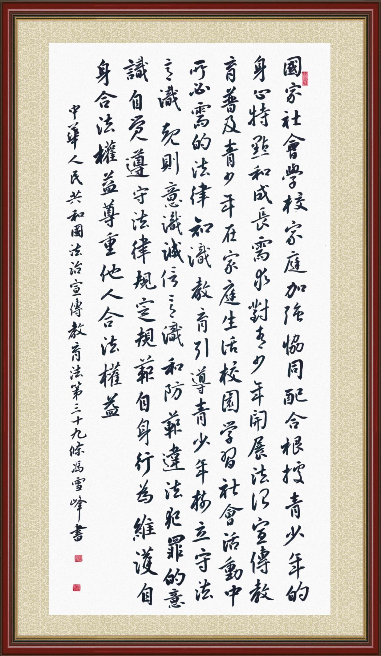 《中華人民共和國(guó)法治宣傳教育法》自2025年11月1日起開(kāi)始施行。法治宣傳教育是全面依法治國(guó)的長(zhǎng)期基礎(chǔ)性工作。法治宣傳教育法對(duì)提升全民法治素養(yǎng)和社會(huì)治理法治化水平、推動(dòng)建設(shè)更高水平的社會(huì)主義法治國(guó)家具有重要意義。為更好地學(xué)習(xí)、宣傳、貫徹這部法律,法治日?qǐng)?bào)社聯(lián)合司法部普法與依法治理局,開(kāi)展了“‘書(shū)·法’系列活動(dòng)之書(shū)寫《中華人民共和國(guó)法治宣傳教育法》”活動(dòng)。