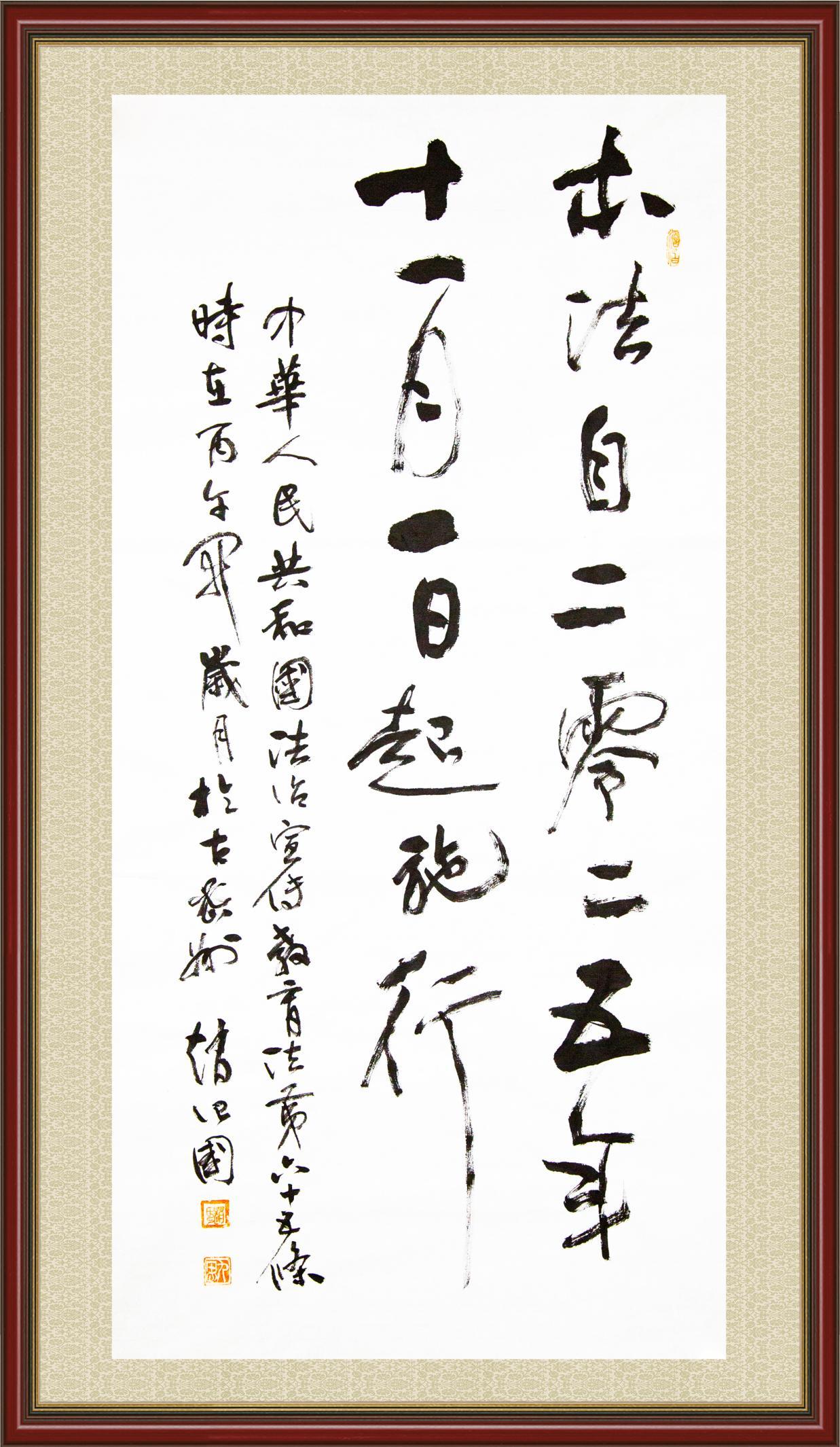 2020年7月11日,由法治日報社主辦的“書·法”系列活動正式啟動,先后書寫《中華人民共和國民法典》《中華人民共和國憲法》《中華人民共和國民營經(jīng)濟促進法》等21部法律法規(guī)。