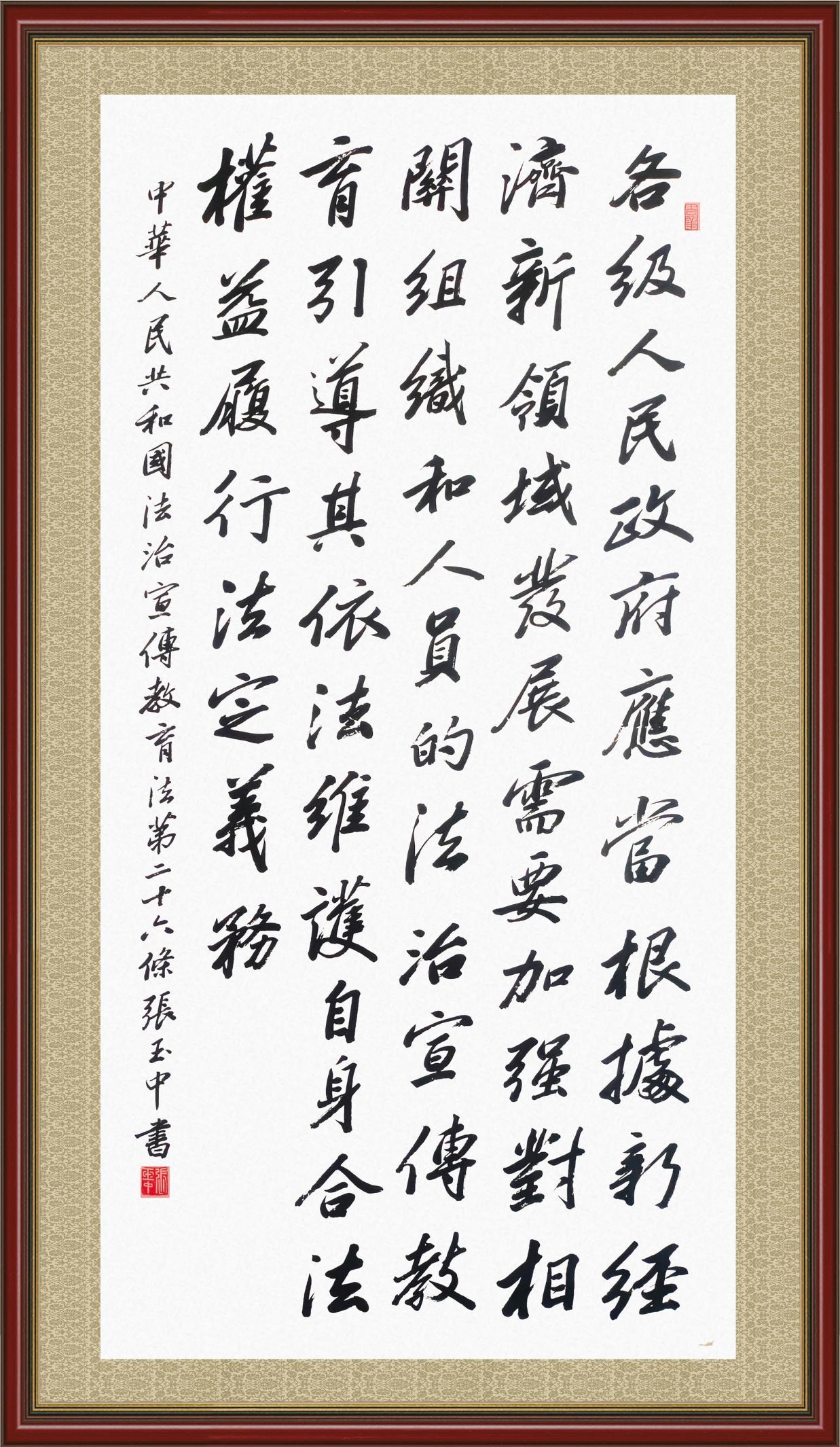 2020年7月11日,由法治日報(bào)社主辦的“書·法”系列活動(dòng)正式啟動(dòng),先后書寫《中華人民共和國民法典》《中華人民共和國憲法》《中華人民共和國民營經(jīng)濟(jì)促進(jìn)法》等21部法律法規(guī)。